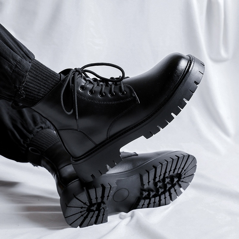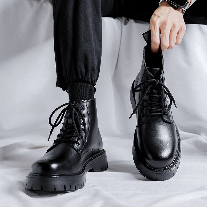 Martin Boots Men's British Style High Top Boots Men's Genuine Leather Mid-cut Height-enhancing Workwear Chelsea Short Boots