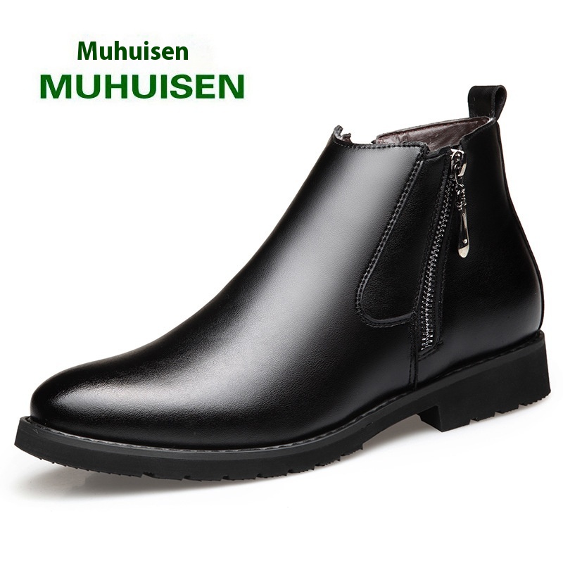 Popular Men's Shoes Winter Martin Boots Men's Retro Short Boots Plus Velvet Warm High-top Leather Boots Zipper