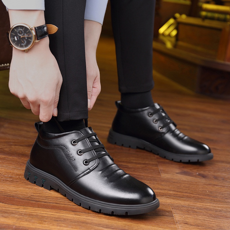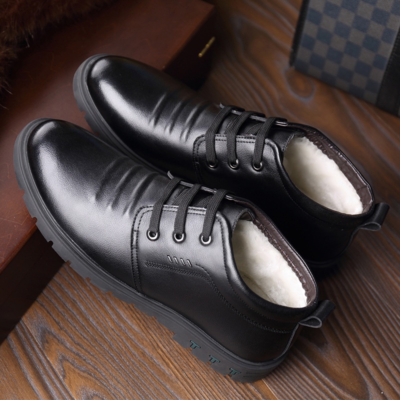 High-top Wool Shoes Men's Winter Business Casual Men's Leather Shoes Genuine Leather Plus Velvet Warm Cotton Shoes Men