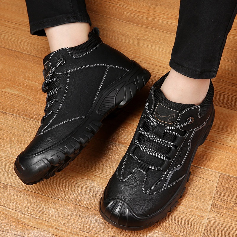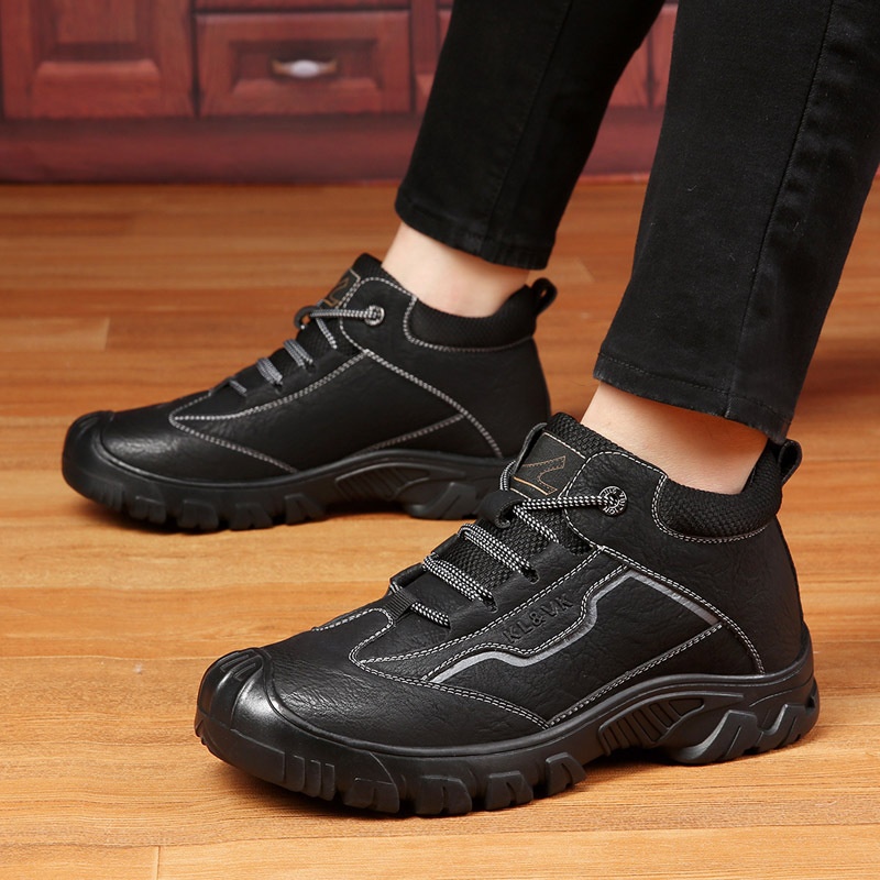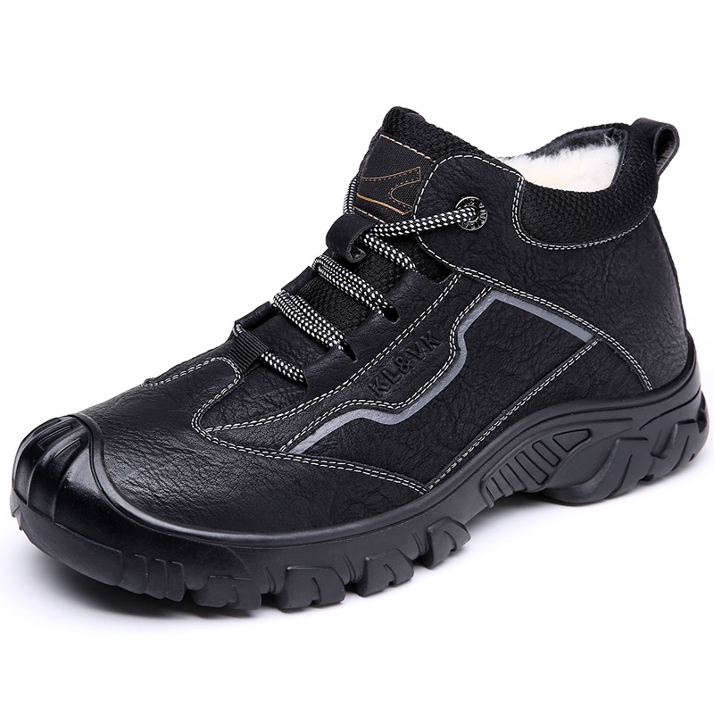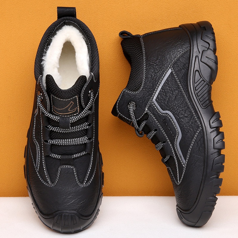 Winter Men's Cotton Shoes Genuine Leather Warm Plus Velvet Thickened Sports Leisure Wool Fur High Top Snow Boots Men
