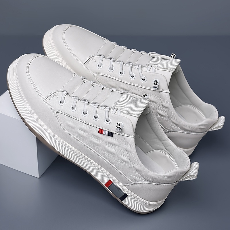 Spring Crocodile Pattern Toe Shoes Men's Casual Driving Shoes Soft Sole Slip-On White Shoes Sports Leather Shoes