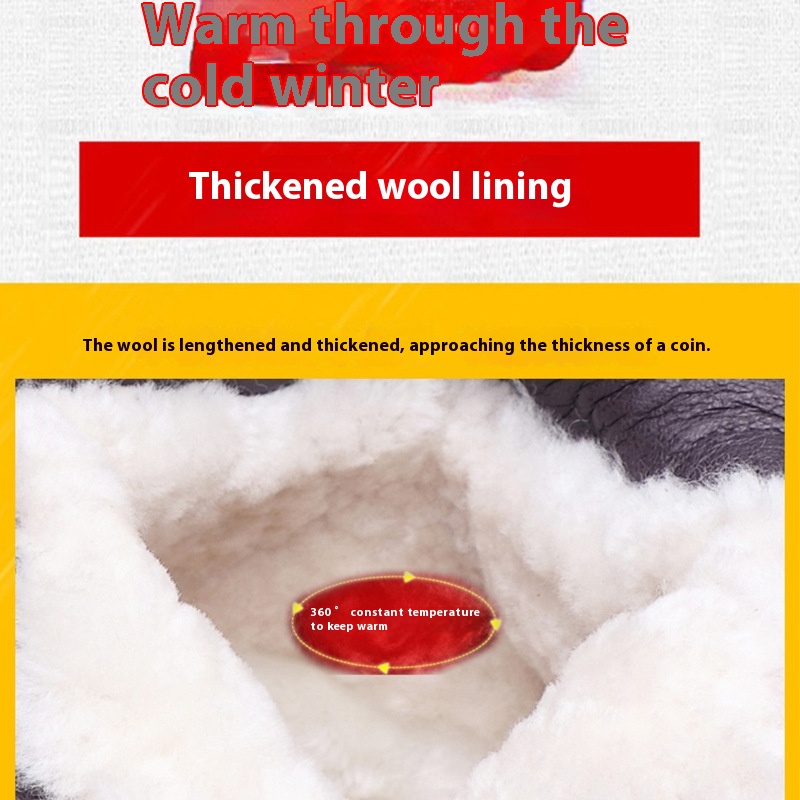 Men's Cotton Shoes Winter Plus Velvet Warm Thick Sheepskin Fur Integrated Casual High-top Leather Shoes Non-slip Men's Boots Snow Boots