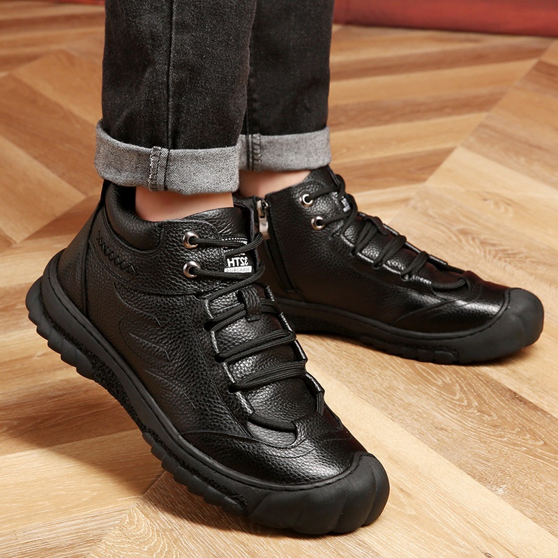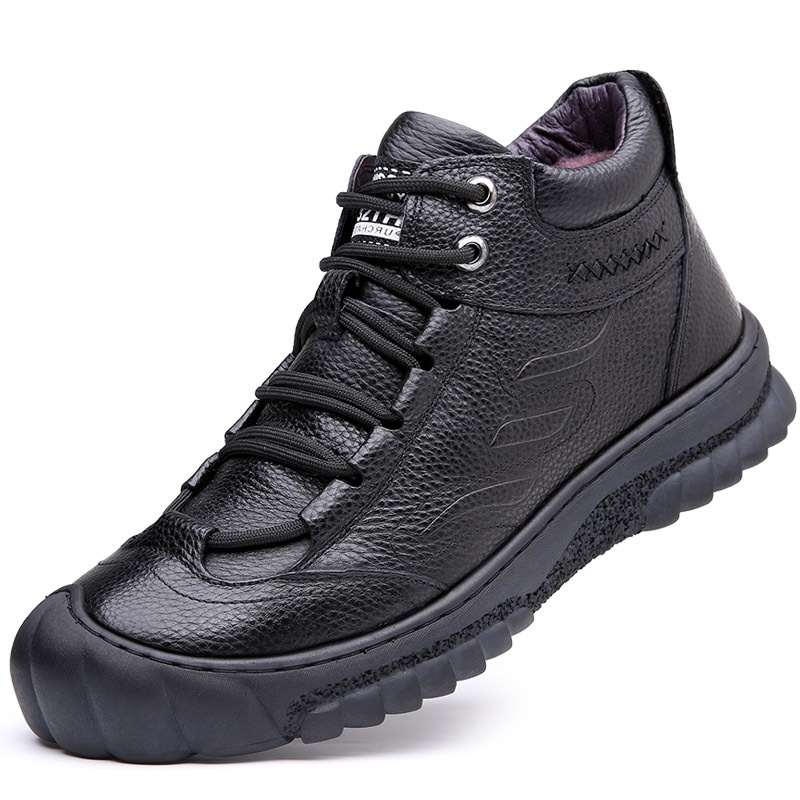 Winter Men's Cotton Shoes Genuine Leather Warm Plus Velvet Thickened Sports Leisure Wool Fur High Top Snow Boots Men