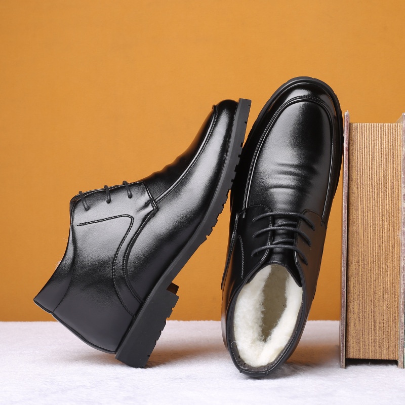 Winter Warm Cotton Shoes Men Lace-up Business Leather Shoes Dad Shoes Middle-aged And Elderly Thick Warm Casual Men's Cotton Boots