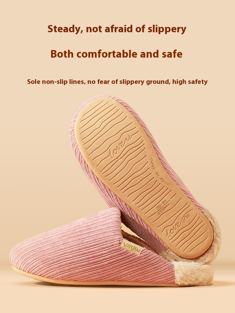 Yuangang Cotton Slippers For Women In Autumn And Winter, Indoor Anti-slip Couples Home Use Thick-soled Plush Slippers For Men In Winter