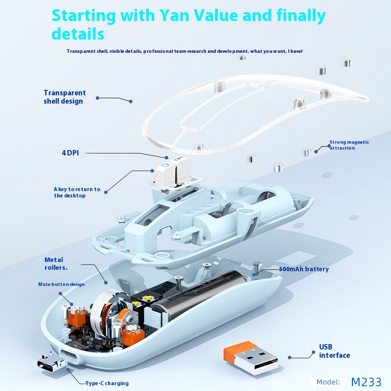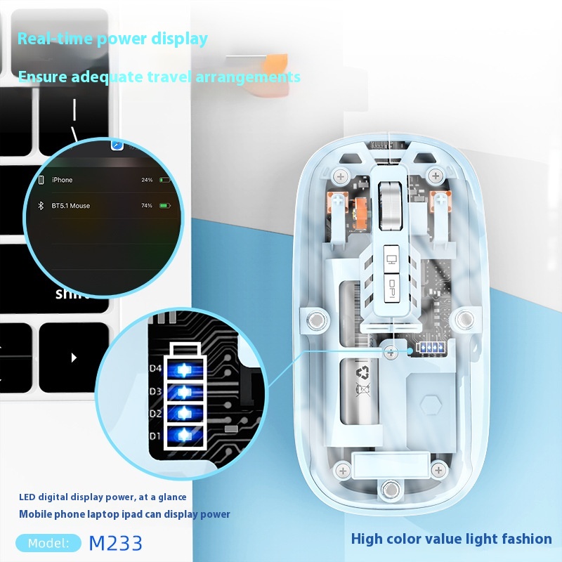 Transparent Wireless Mouse Three-mode Rechargeable Mobile Phone Tablet2.4 G+Bluetooth Office Mouse