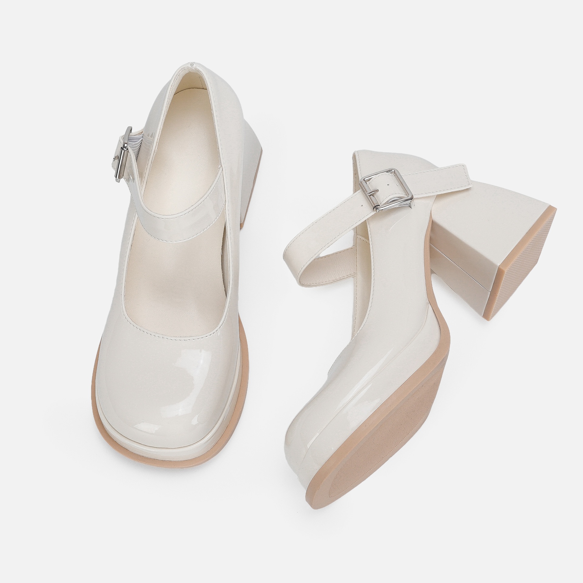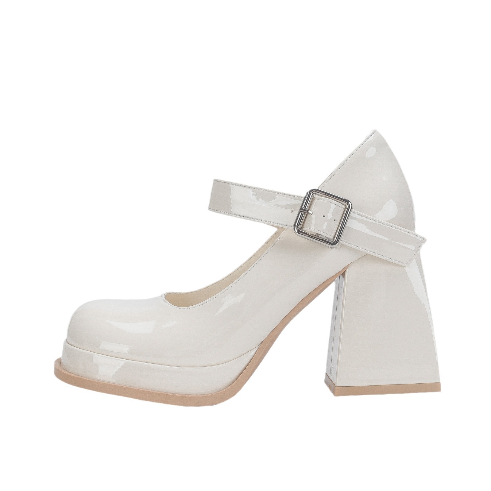 High Heels Women's Thick Heels Beige Mary Jane Shoes Thick Sole Waterproof Platform Round Toe One-strap Japanese JKLolita Small Leather Shoes