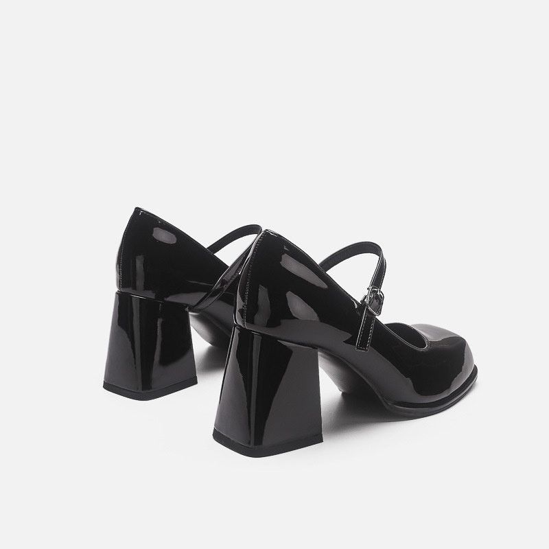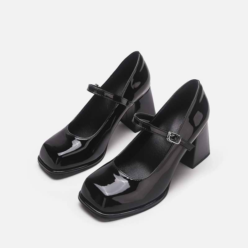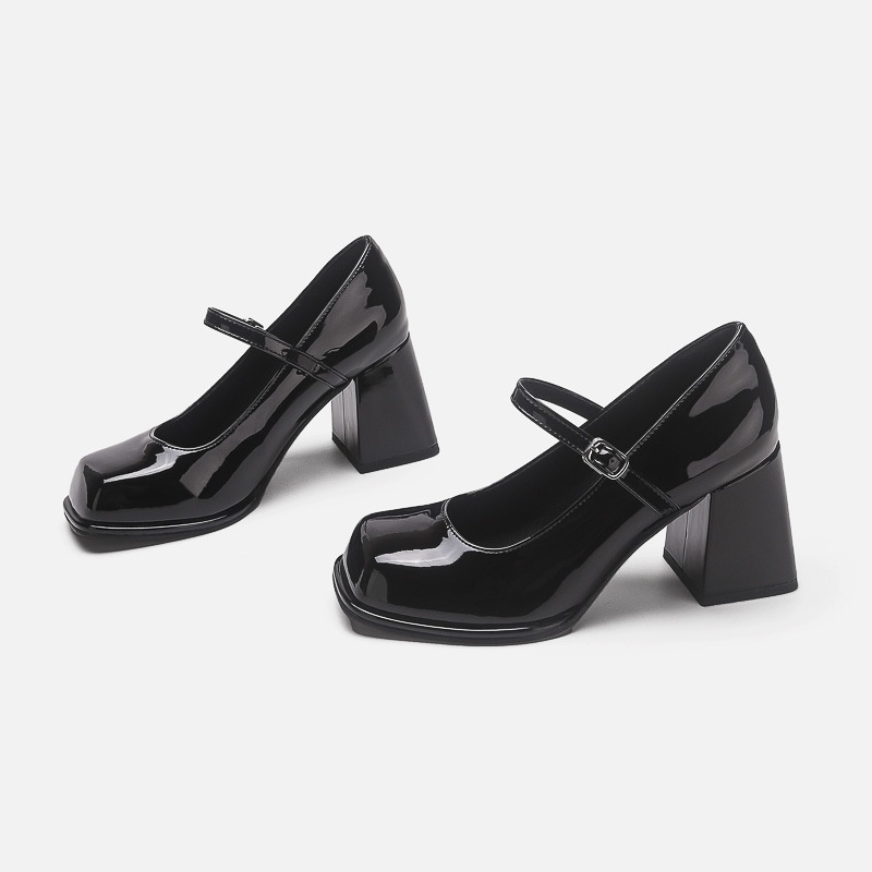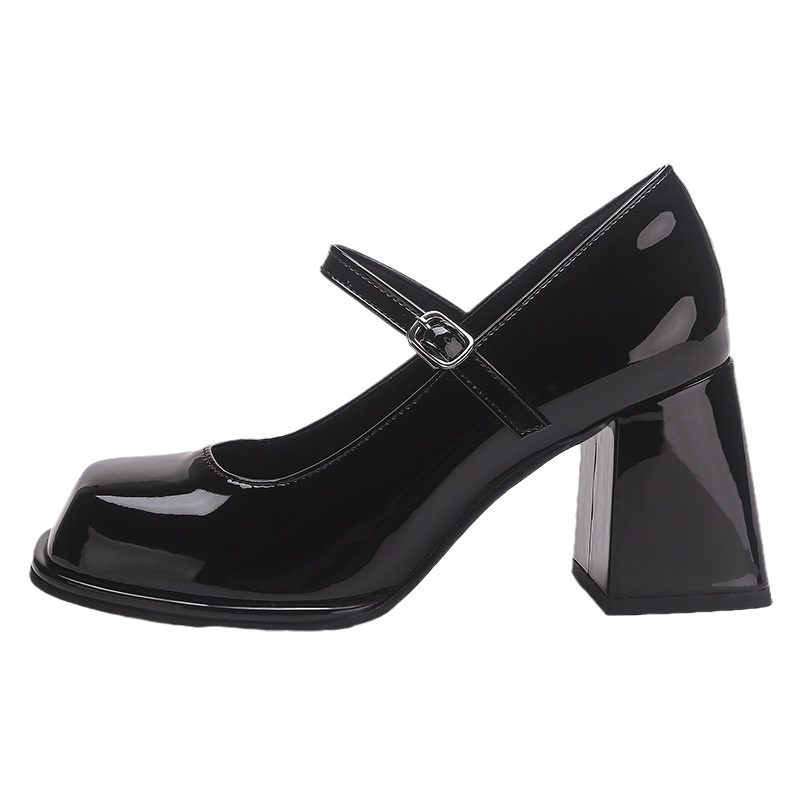 French High Heels Women's Retro Black College Style Buckle Square Toe Thick Bottom Thick Heel Small Leather Shoes Mary Jane Single Shoes