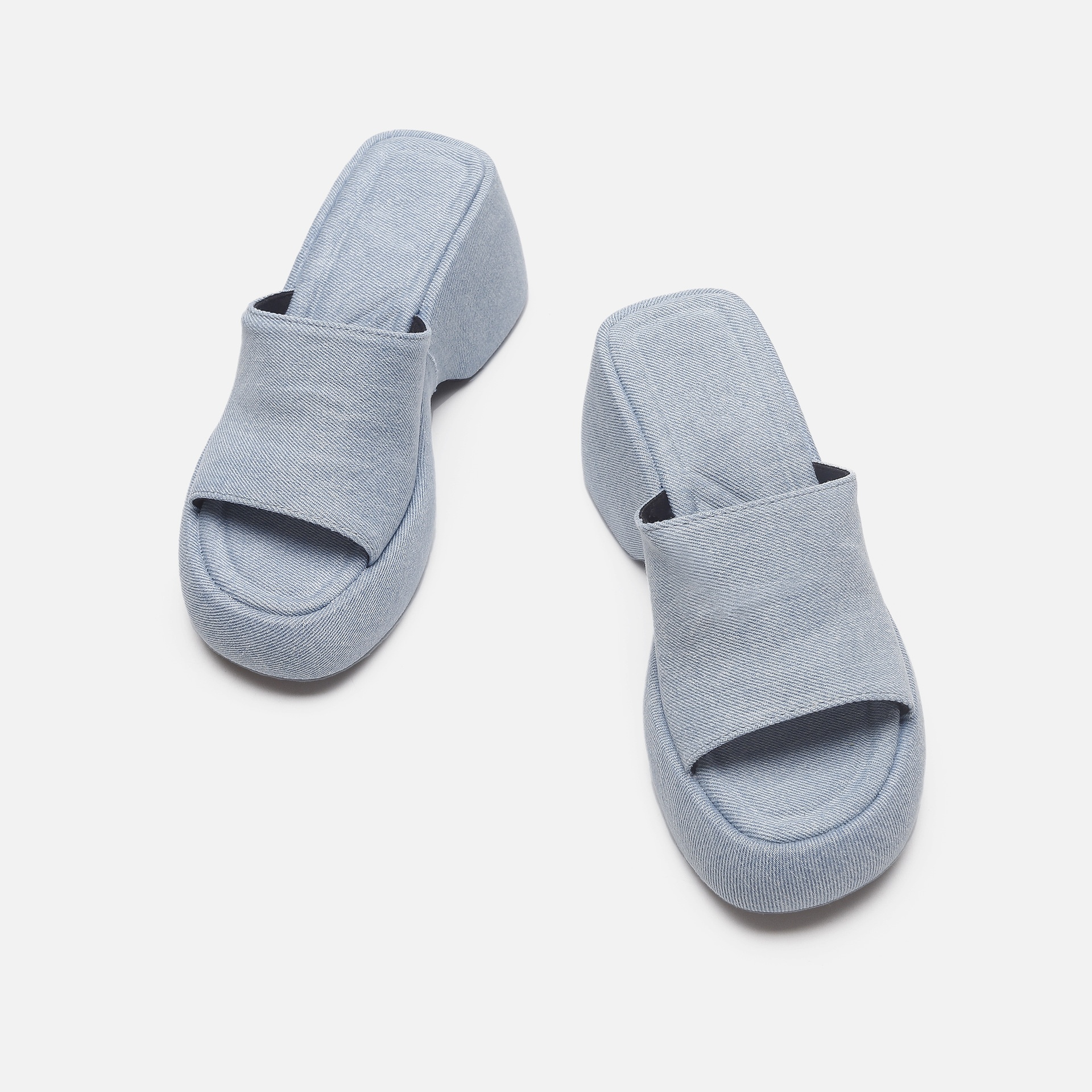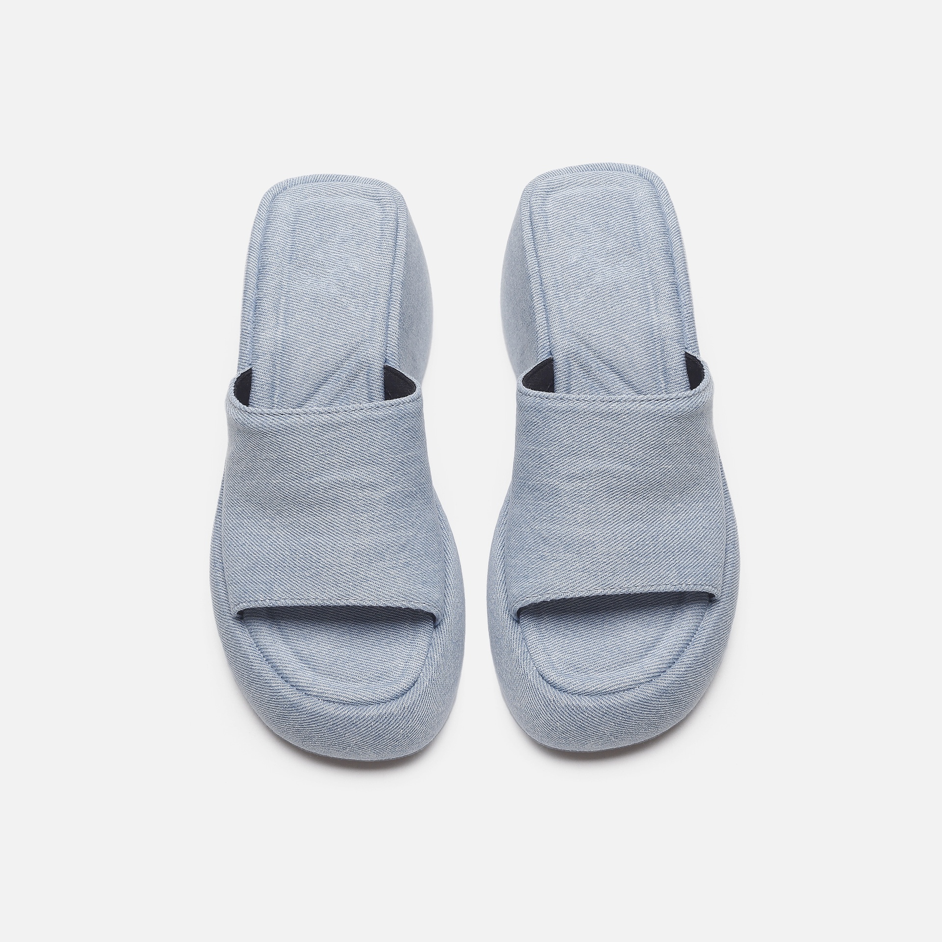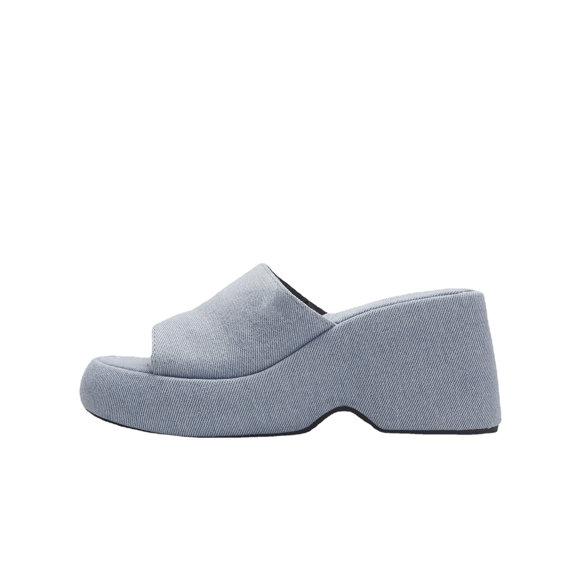 Foreign Trade Blue Denim Wedge Heel Fish Mouth Sandals Women's Thick Bottom Cloth Slippers Women Summer
