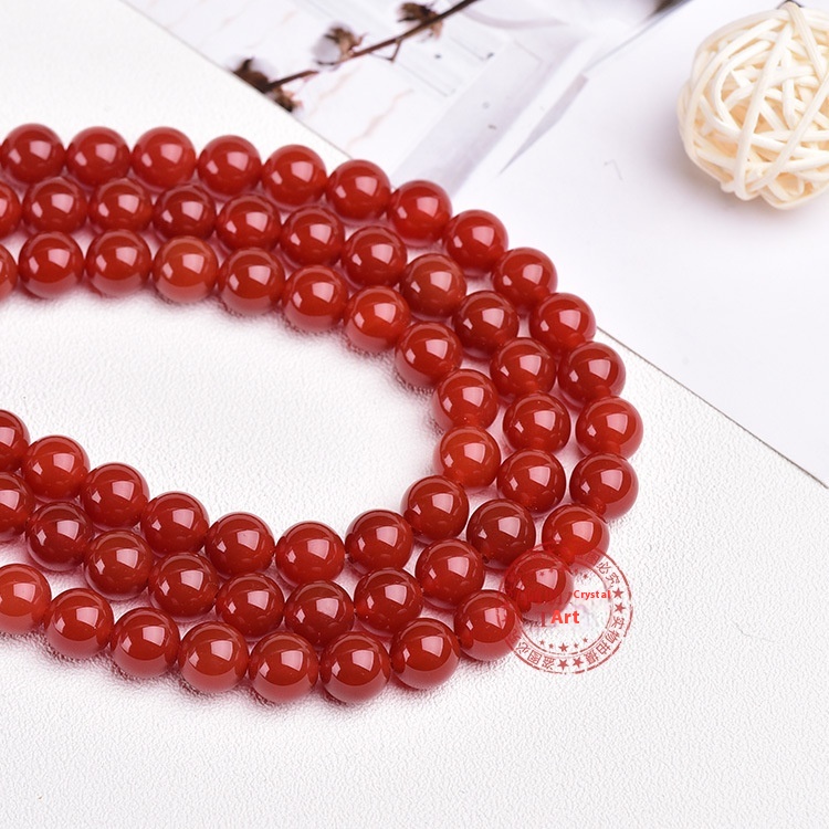 Natural Red Agate Crystal Chalcedony Round Loose Beads DIYJewelry Accessories Semi-finished Round Beads Bracelet S