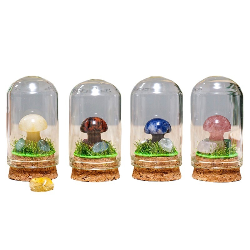 Natural Crystal Raw Stone Mushroom Micro Landscape Mineral Specimen Children's Science Holiday Gift Home Decoration Ornaments