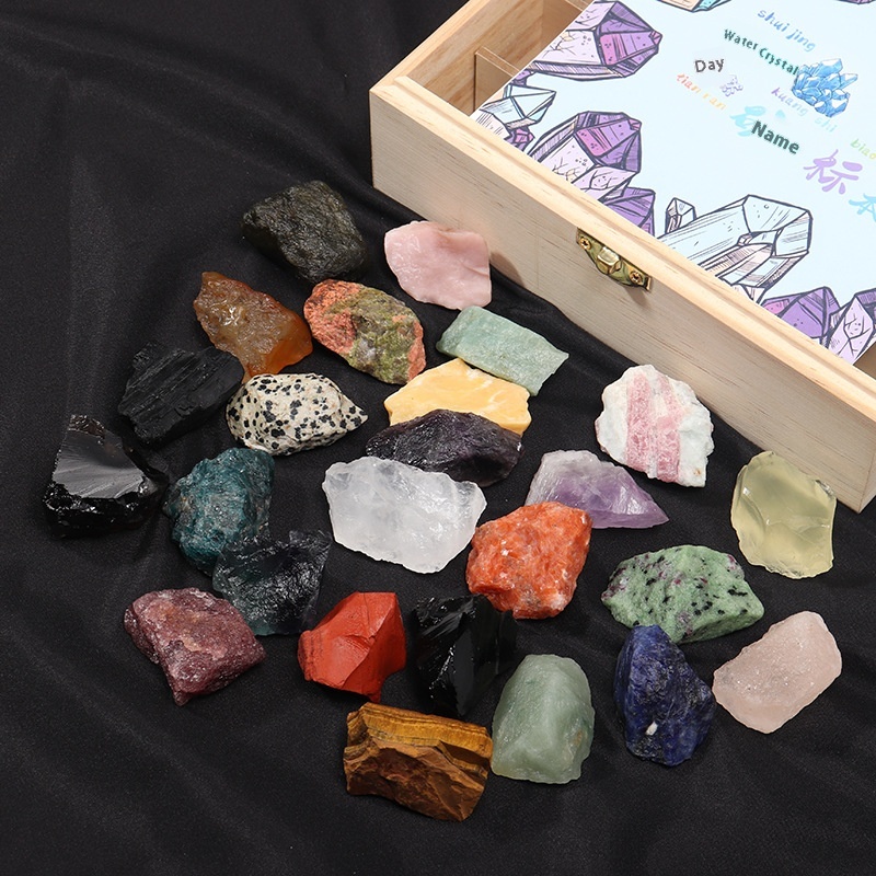 Natural Crystal Raw Stone Ore Specimen Box Jade Agate Stone Children's Science Collection Holiday Gift Ornaments