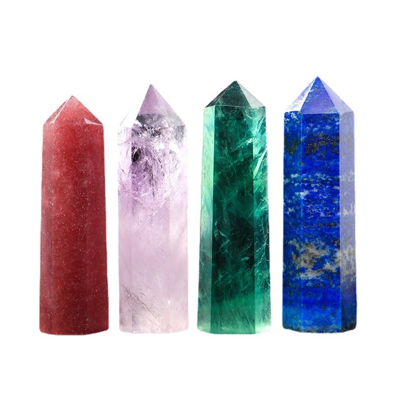 8-9cm Purple White Crystal Column Ornaments Crystal Raw Stone Polished Single-pointed Hexagonal Column Magic Wand Home Decoration Energy Column