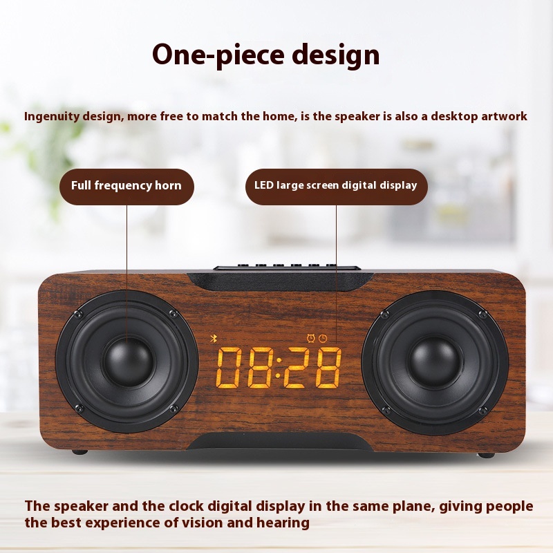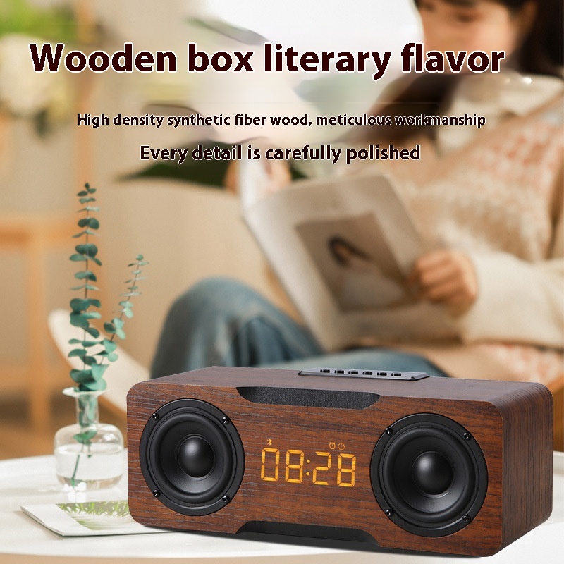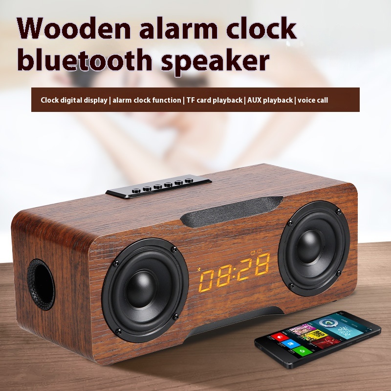 M8 CWooden Clock Bluetooth Speaker Supports UDisk TFCard Function Home Desktop Speaker
