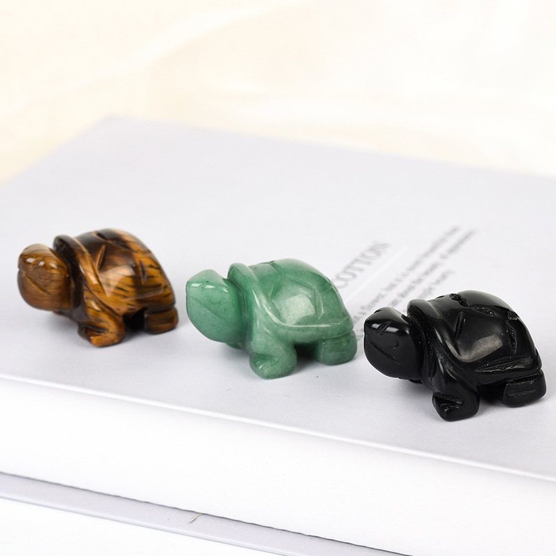 Crystal1.5 Inch Turtle Semi-precious Stone Rose Crystal Carving Jade Crafts Office Desk Jade Ornaments