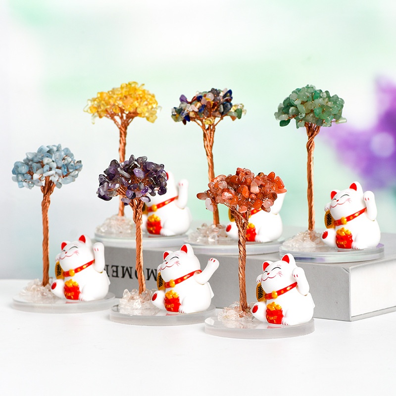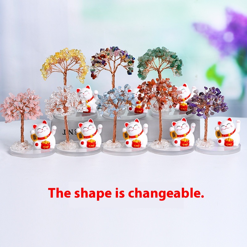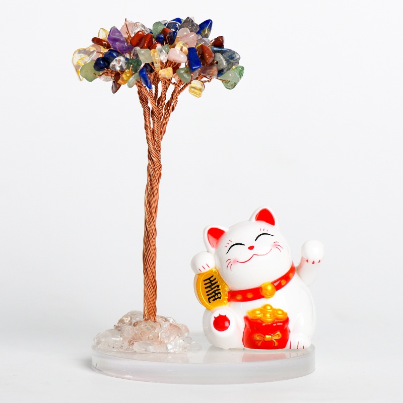 Natural Crystal Tree Gravel Ornaments Crystal Tree Home Creative Office Decoration Crafts White Cat Style
