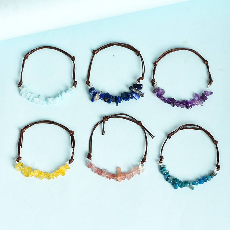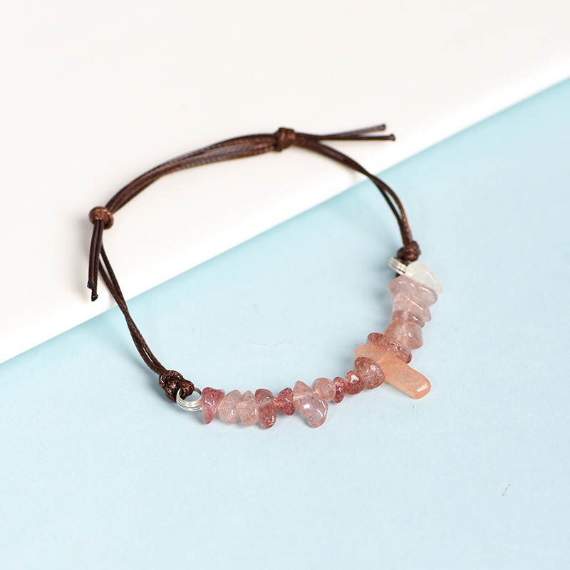 's Natural Crystal Mixed Gravel Leather Rope Bracelet Ladies Handmade Rose Quartz Bracelet
