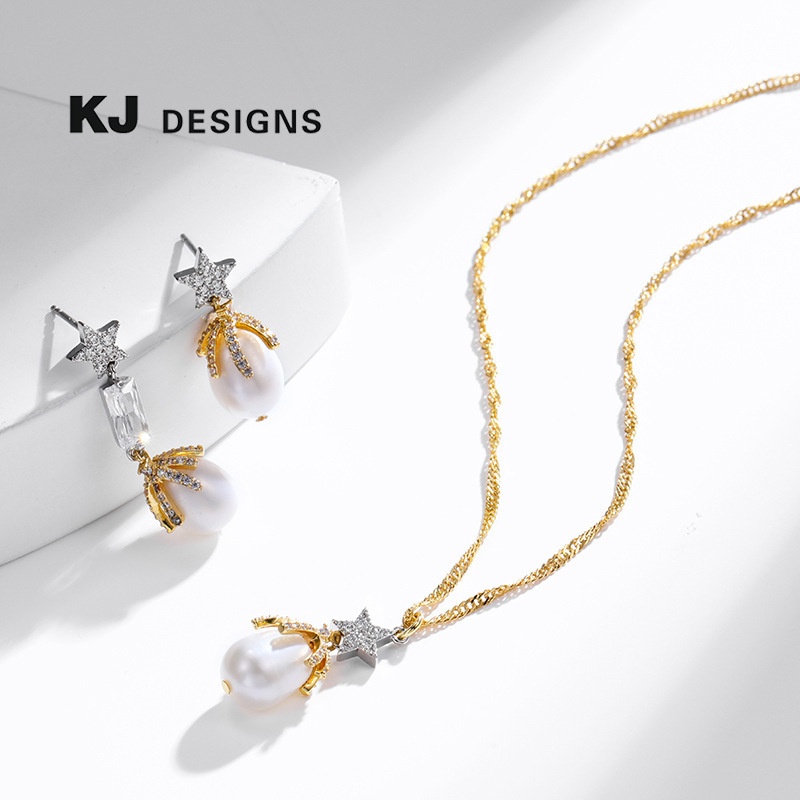 Kenjie Copper Plated Real Gold Inlaid Zirconium Fashionable Natural Baroque Pearl Pendant Women's Set Japanese And Korean Temperament Necklace