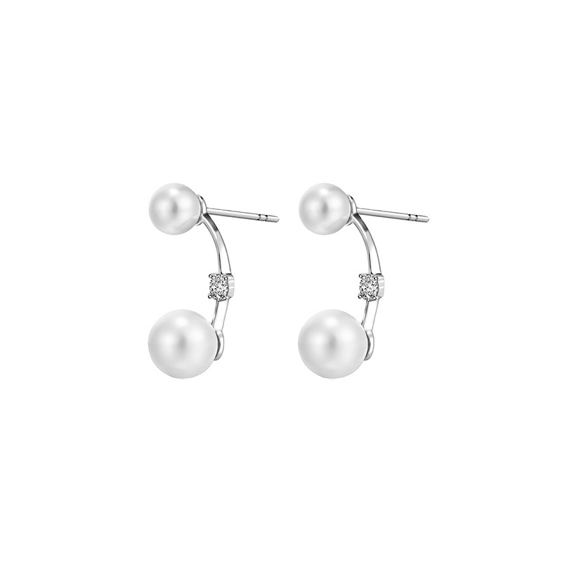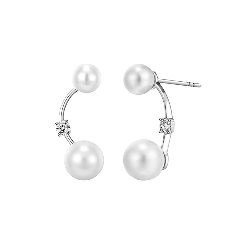 Original S925 Pearl Earrings Sterling Silver Cold Style Zircon Hook Fashion Earrings Personality Simple Exquisite Versatile Female
