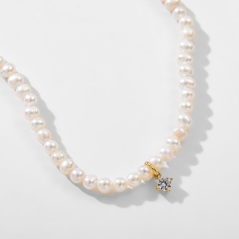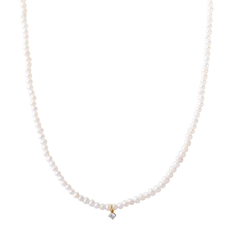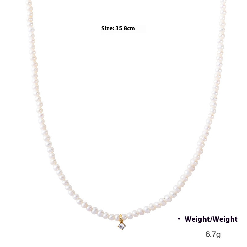 Kenjie Japanese And Korean Simple Temperament Natural Freshwater Pearl Clavicle Necklace Women's Metal Inlaid Zircon Style Necklace