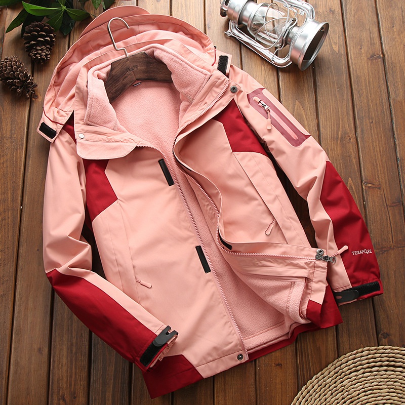 Jacket Men's Three-in-one Detachable Two-piece Winter Velvet Thickened Outdoor Cold-proof And Warm Mountaineering Jacket For Women