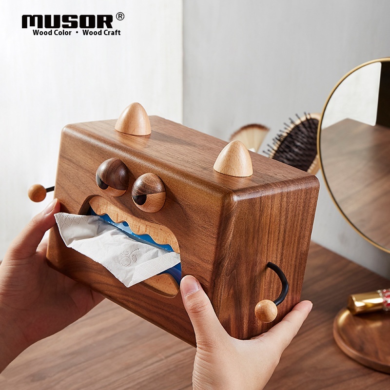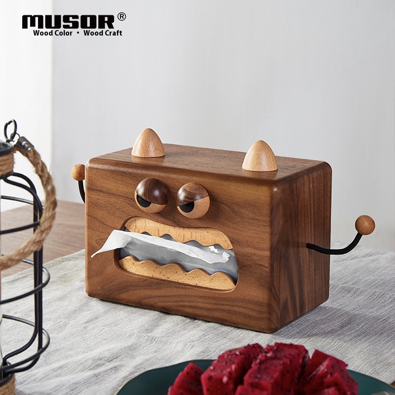 Wooden Color Wooden Art Creative Home Gift Solid Wood Small Monster Tissue Box Cute Cartoon Home Wooden Tissue Box