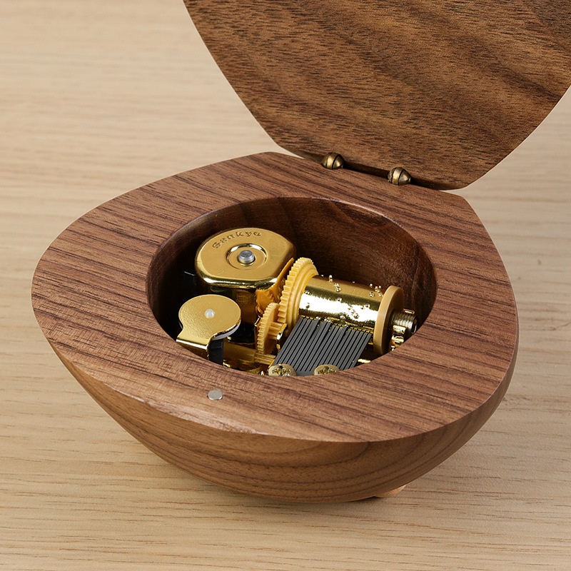 Japanese Sankyo Maple Walnut Shell Lettering Music Box Music Box Creative Ornaments Birthday Gift