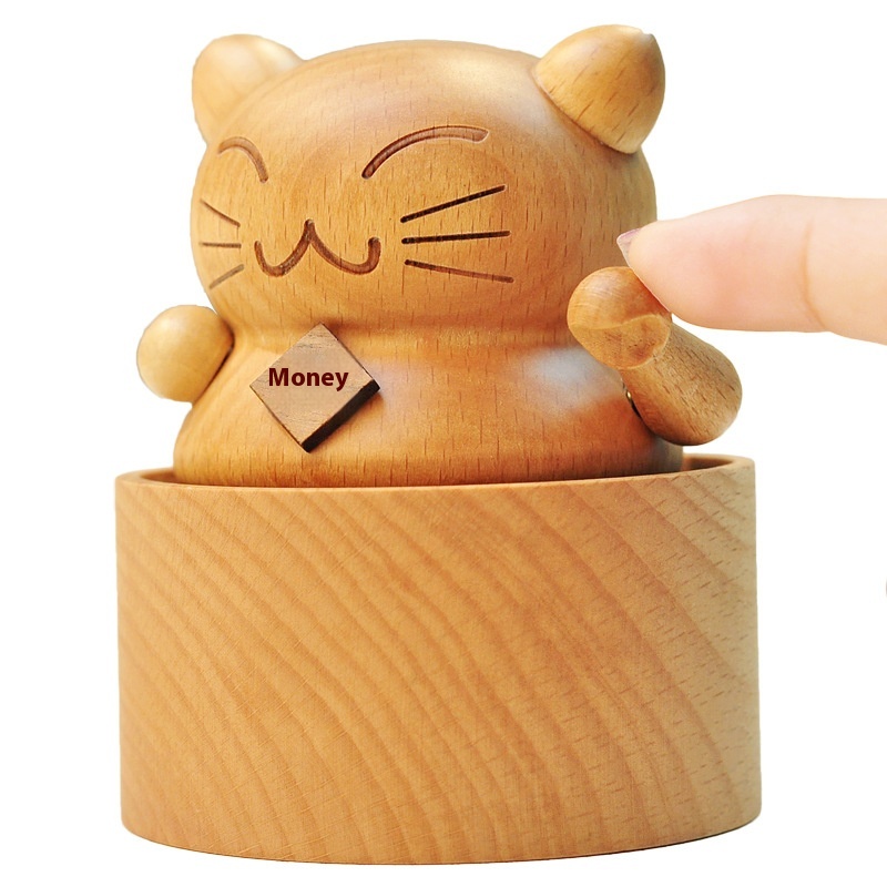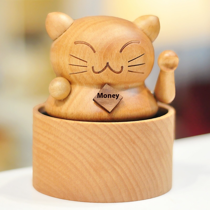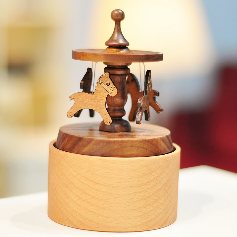 Mini Carousel Fortune Cat Music Box Cake Music Box Solid Wood Creative Birthday Gift For Boyfriend And Girlfriend