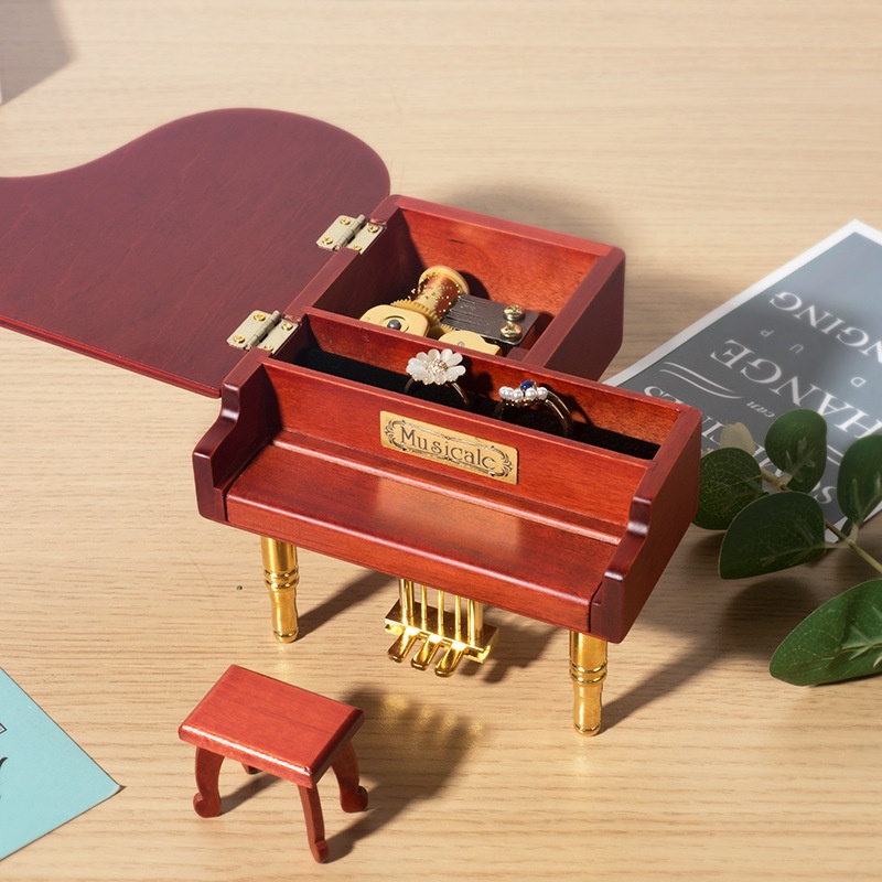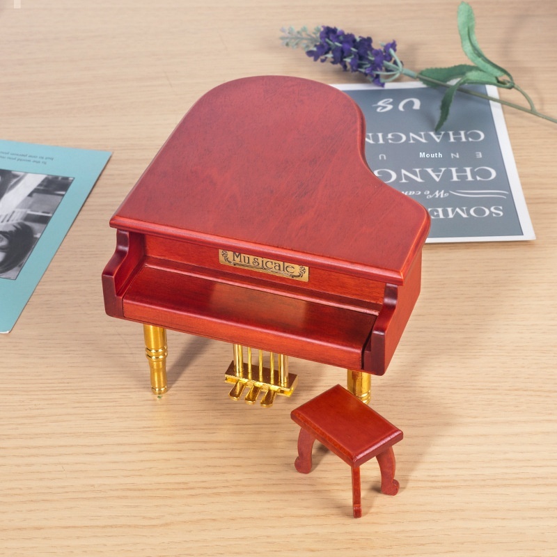 Craftsman House Metal Foot Gold Plated Movement Wooden Piano Music Box Christmas Gift H-M04 JG
