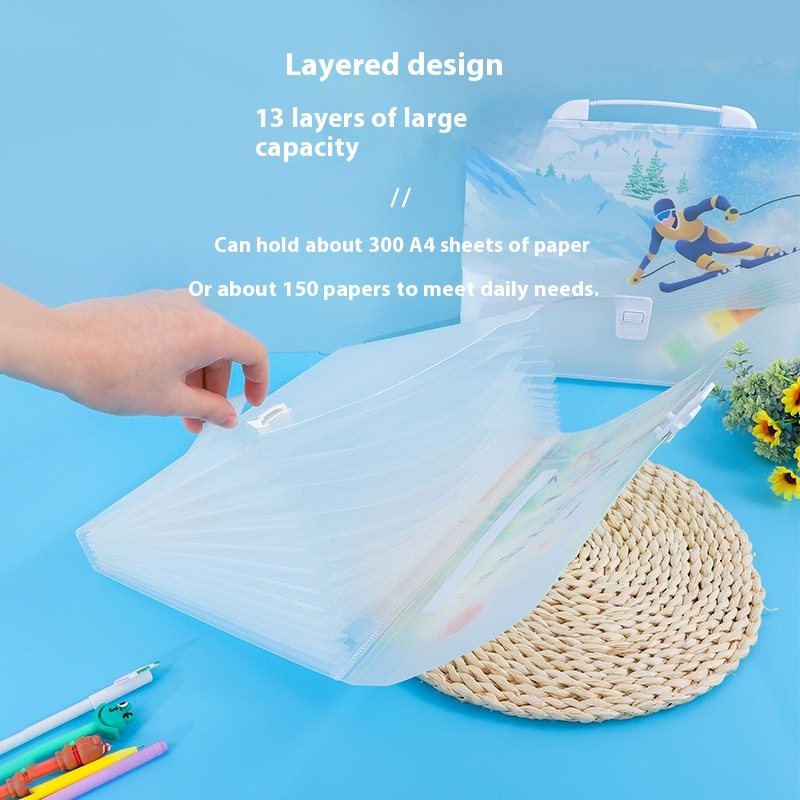 Zeyou A4 Portable Accordion Bag Large Capacity Accordion-style Multi-layer Classification Folder Student Test Paper Storage Bag
