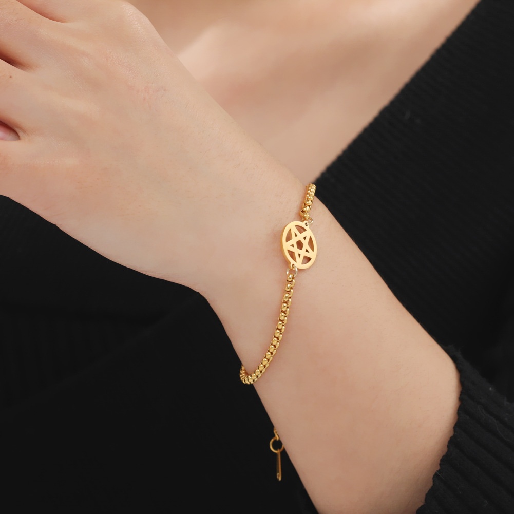 Foreign Trade Platform Hot-selling Jewelry Cutting Hollow Five-pointed Star Pendant Ladies Temperament Versatile304 Stainless Steel Bracelet