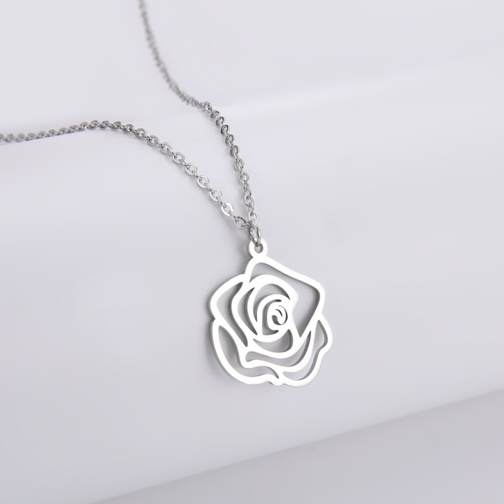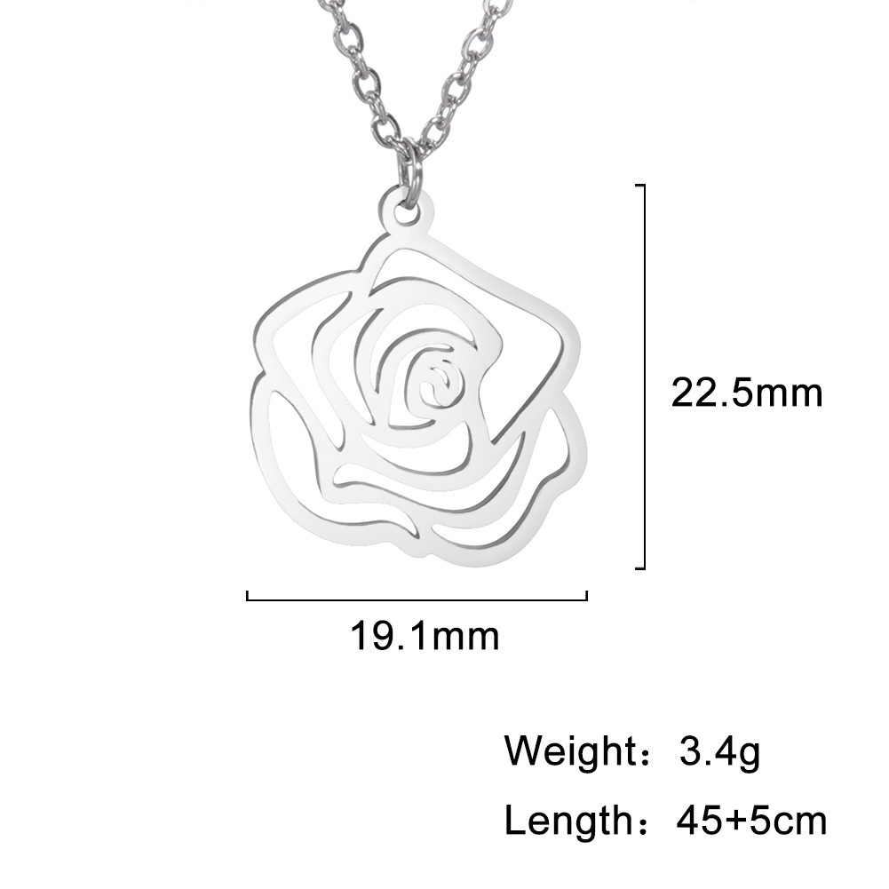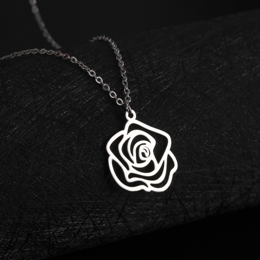 Foreign Trade E-commerce Flower Accessories Cut Titanium Steel Steel Color Hollow Rose Pendant Creative Personality Stainless Steel Necklace