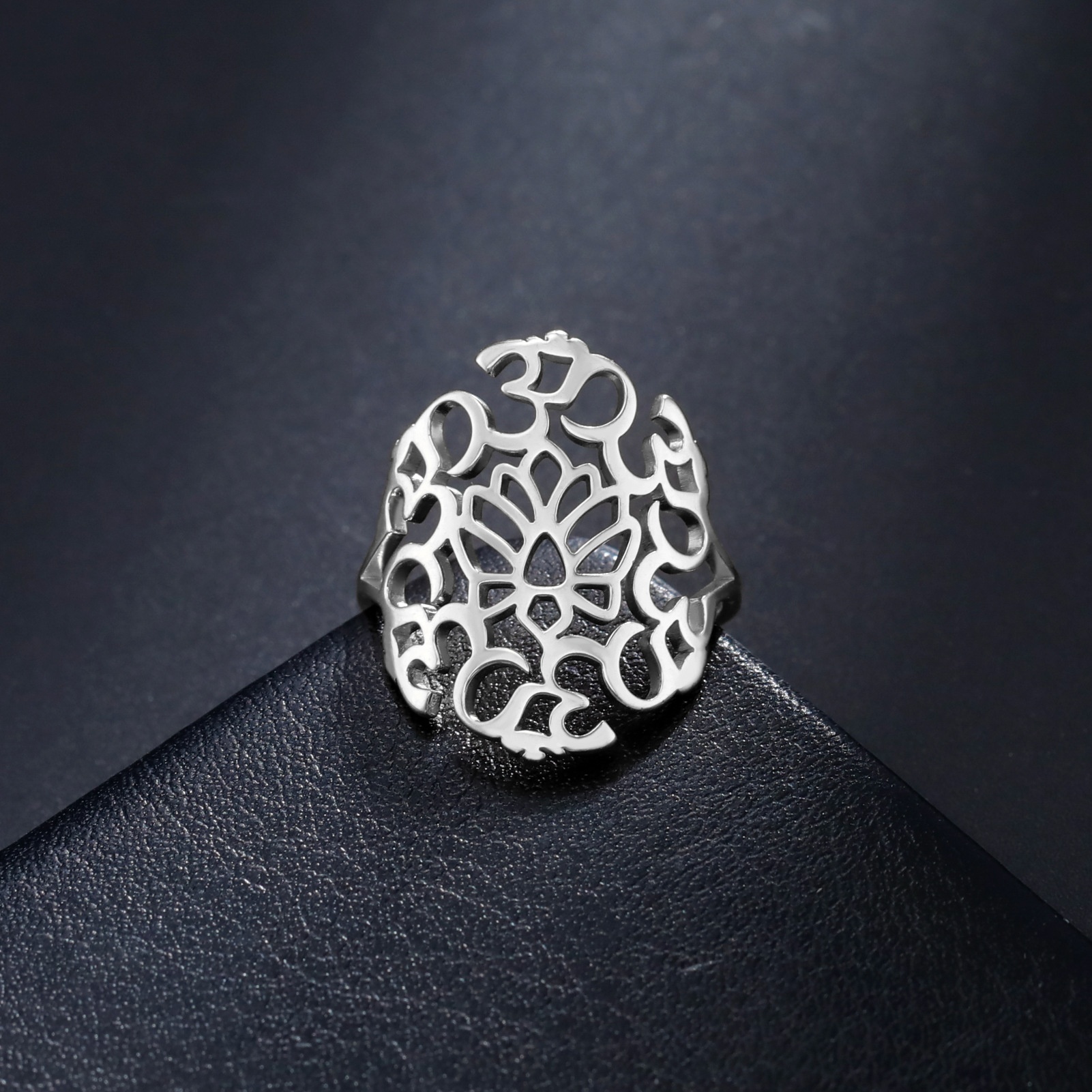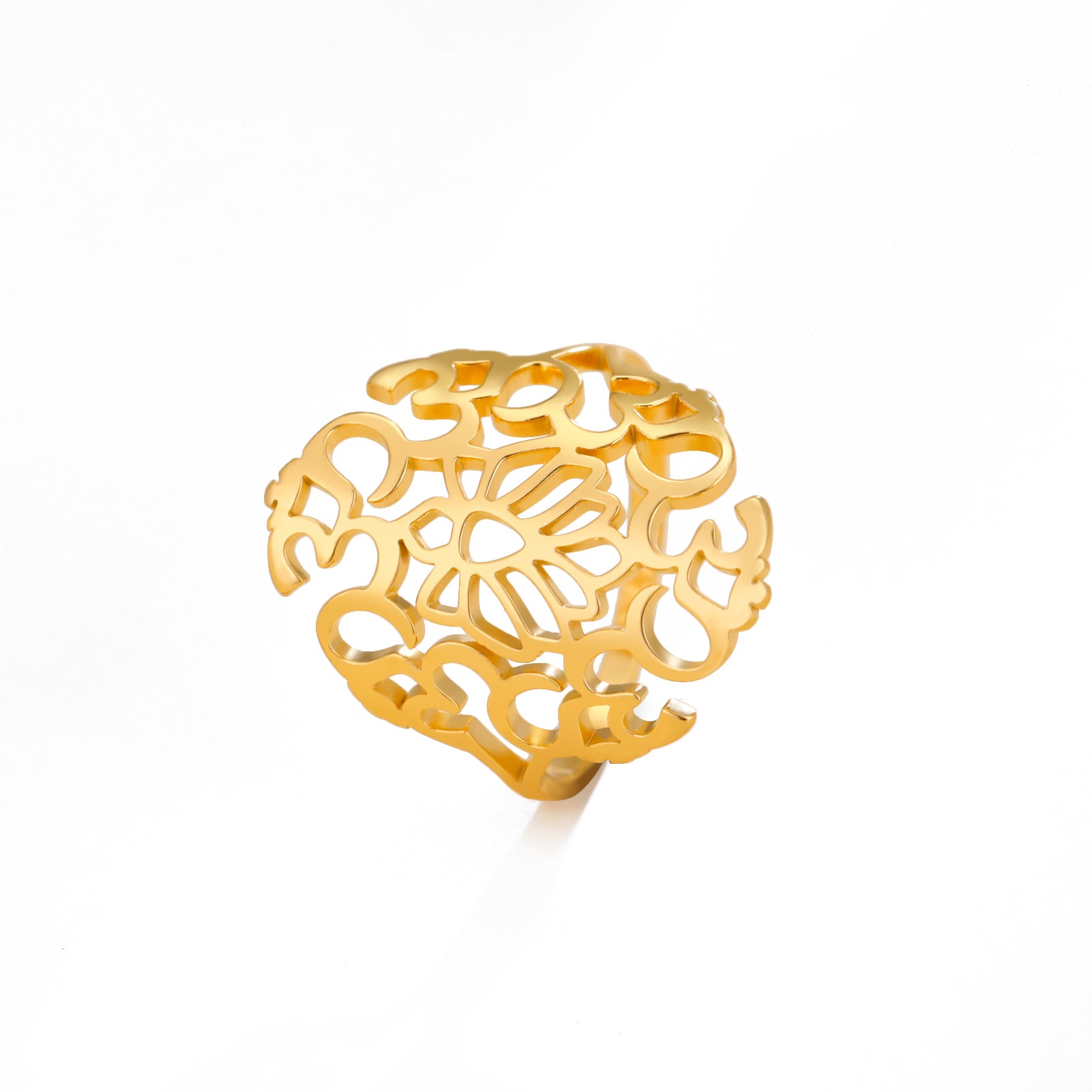 Foreign Trade Export Hot-selling Cut Titanium Steel OMSymbol Ring Fashionable And Simple Stainless Steel Men's And Women's Ring
