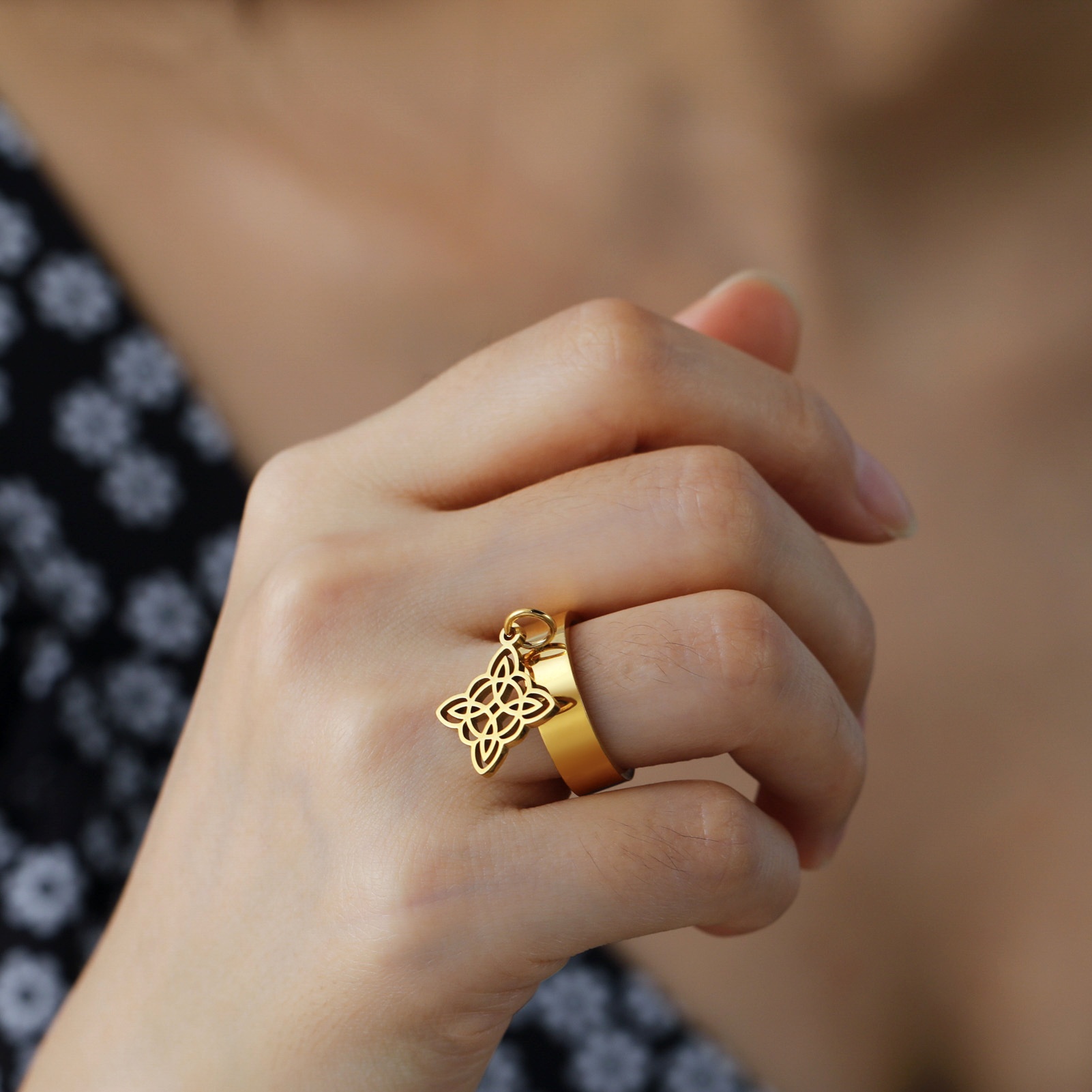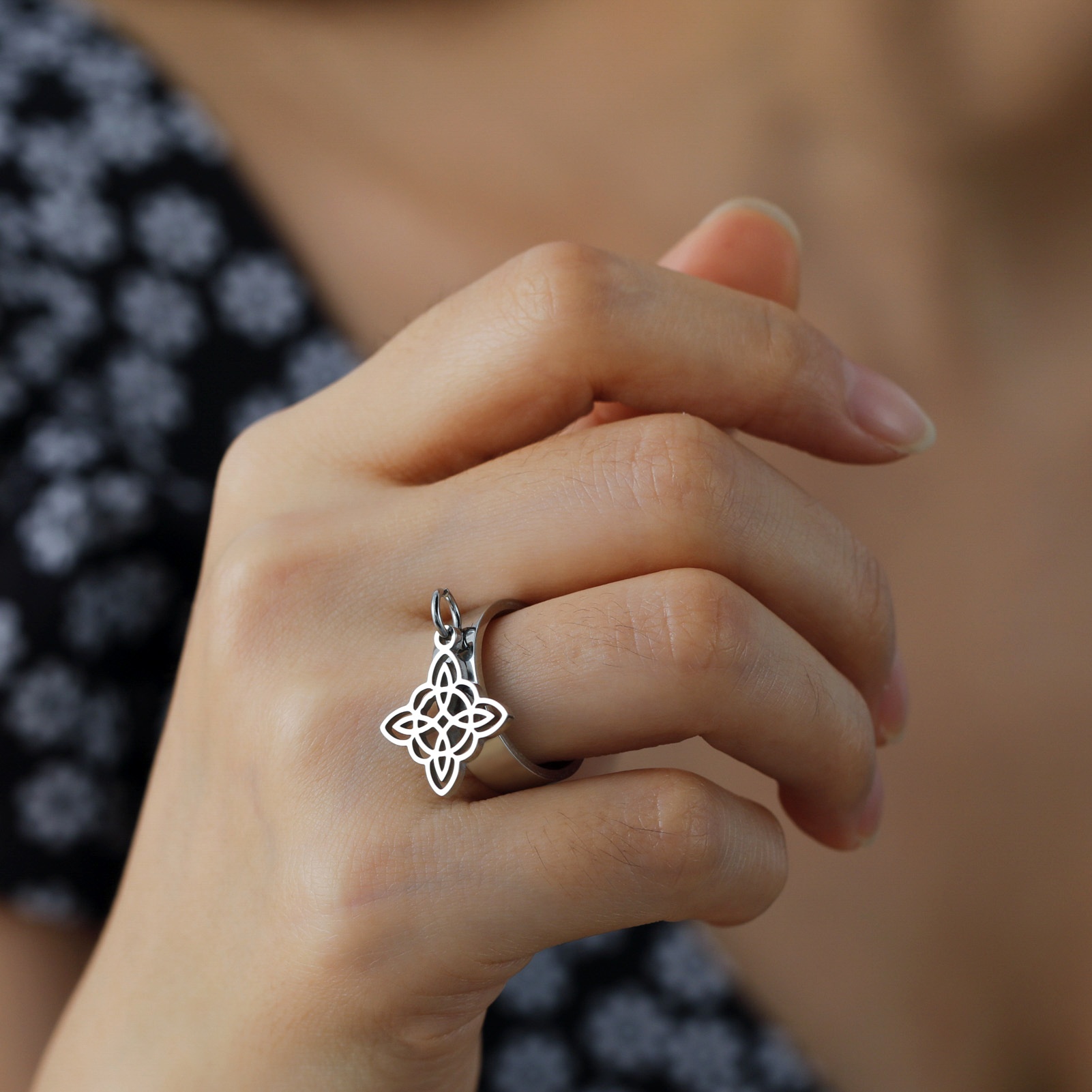 Cutting Titanium Steel Welding Ring Double Layer Witch Knot Pendant Personality All-match Stainless Steel Ring