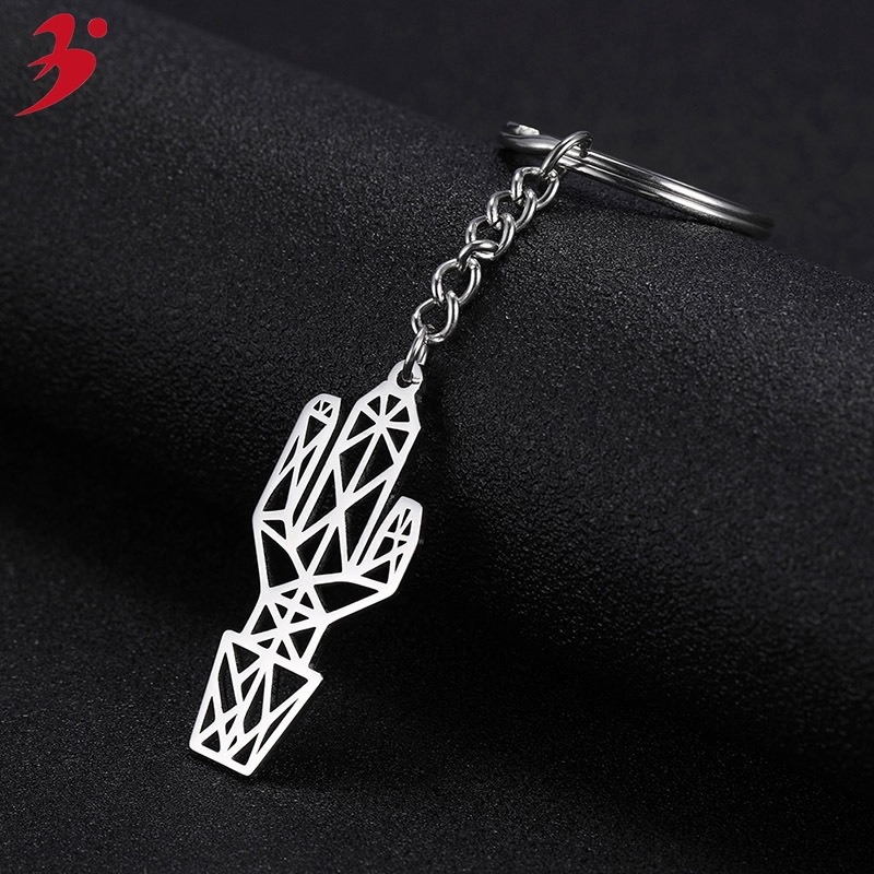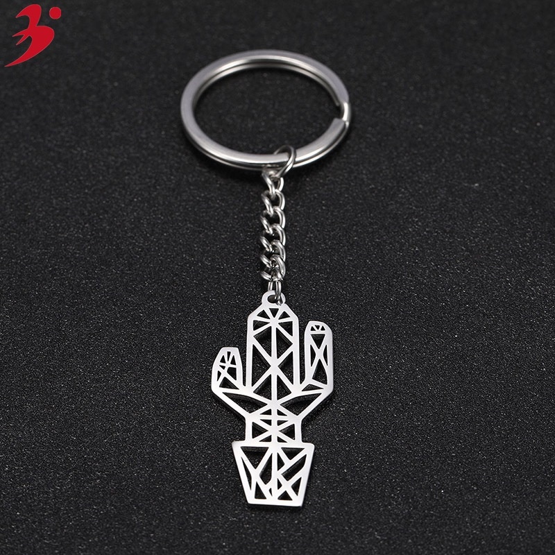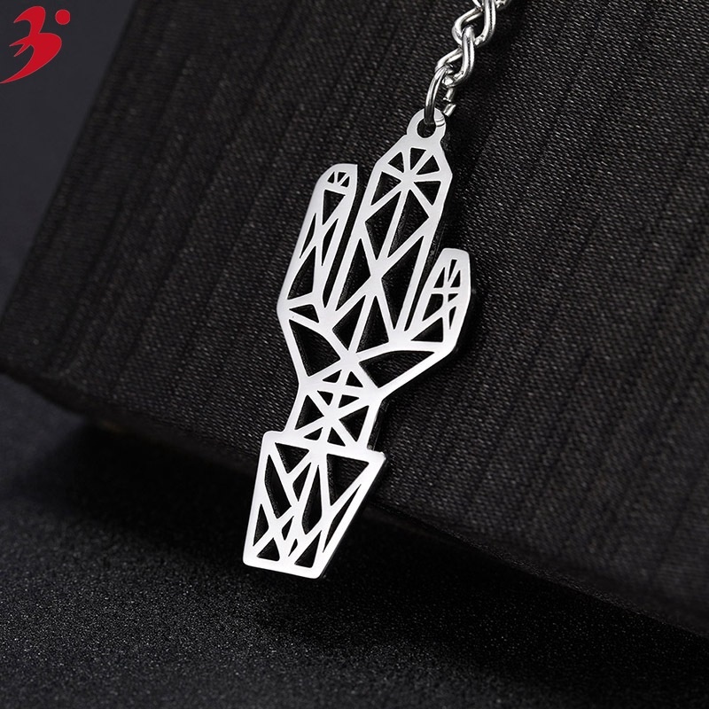 Creative Personality Cute Stainless Steel Plant Pot Keychain Imitation Cactus Jewelry Accessories Small Gifts