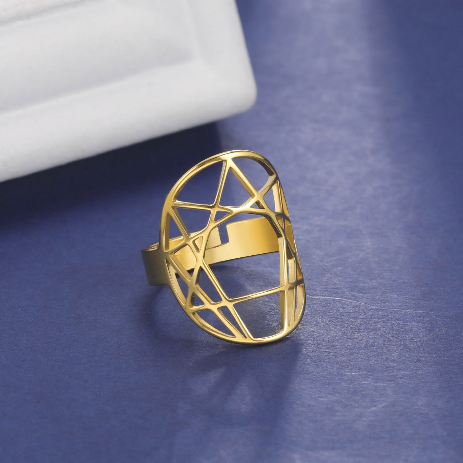 Titanium Steel Ring Cutting Hollow Polygonal Open Ring Foreign Trade304 Stainless Steel Ring