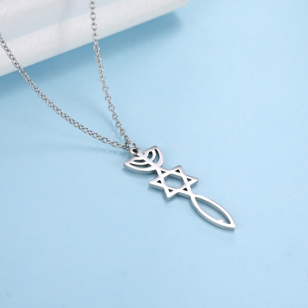 's Niche Design Versatile Cute Female Cut Hollow Fish Plus Six-pointed Star Pendant Stainless Steel Necklace