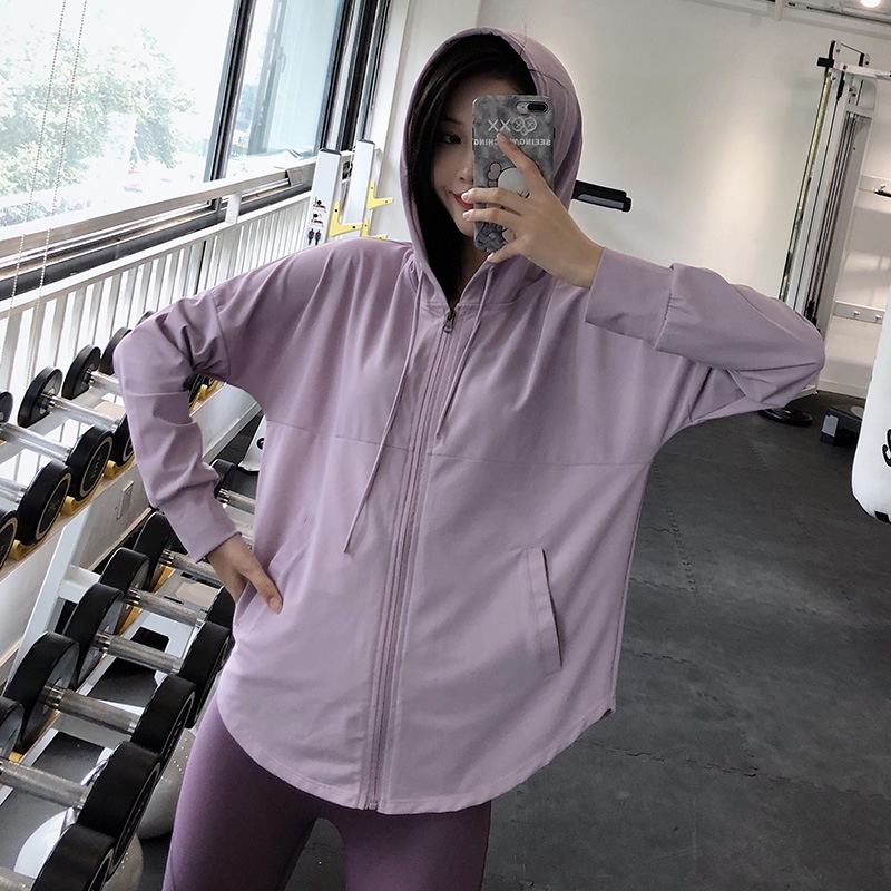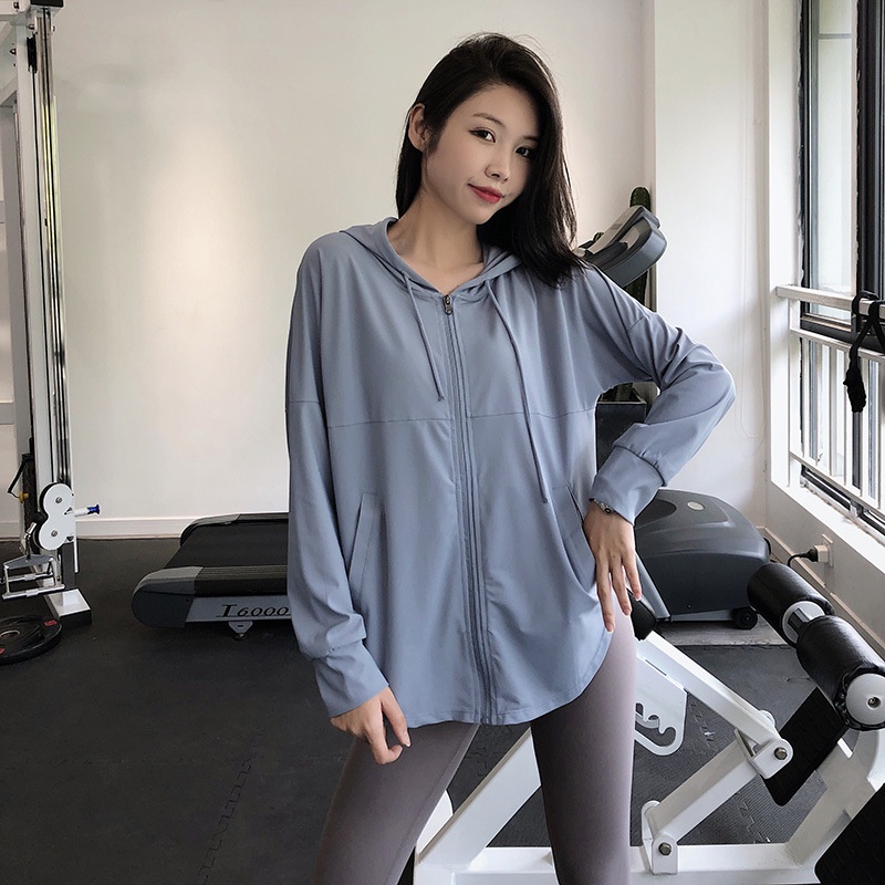 Sports Coat For Women, Loose Large Size, Quick-drying Sun Protection Clothing, Breathable Running Hoodie, Slimming Fitness Yoga Clothing, Long Sleeves