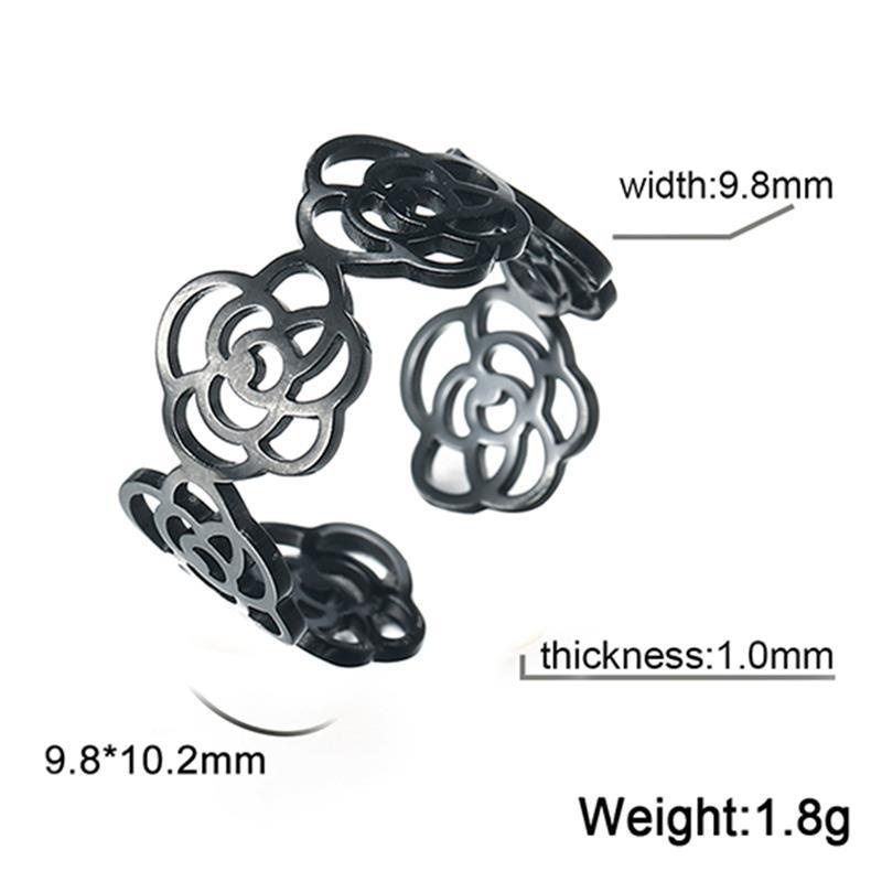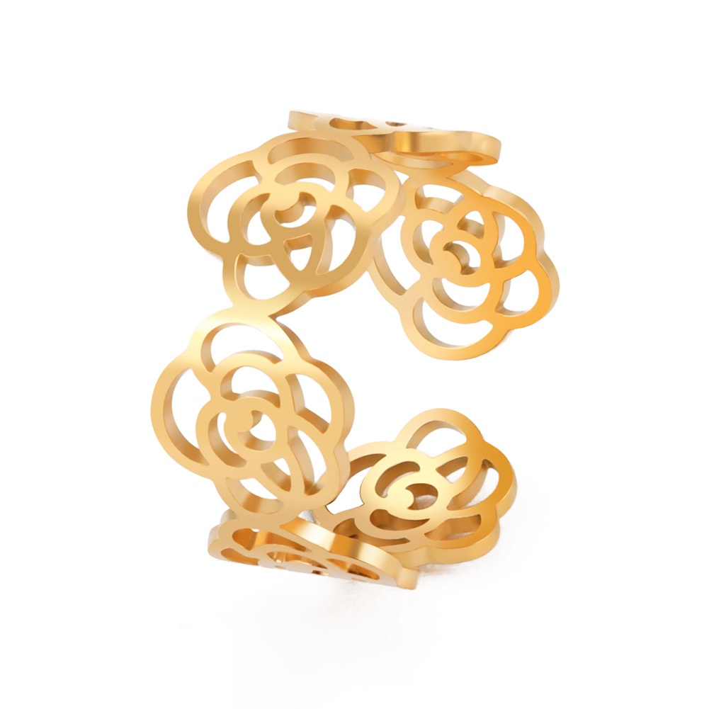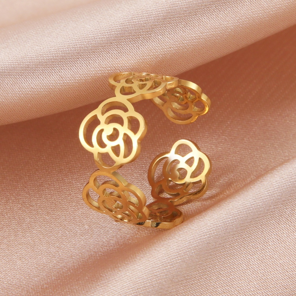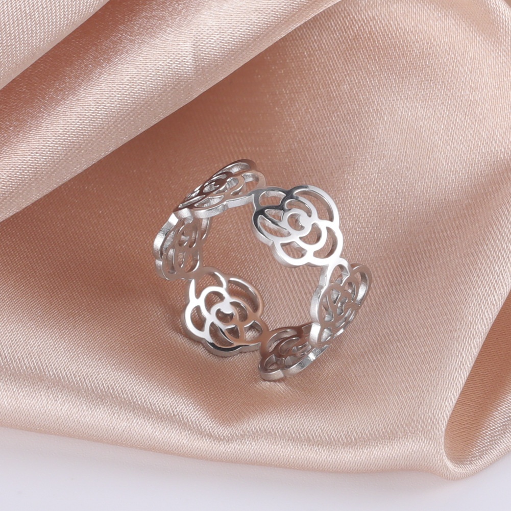 Foreign Trade Jewelry Fashion Simple Hollow Rose Surrounded Open Ring304 Stainless Steel Open Ring