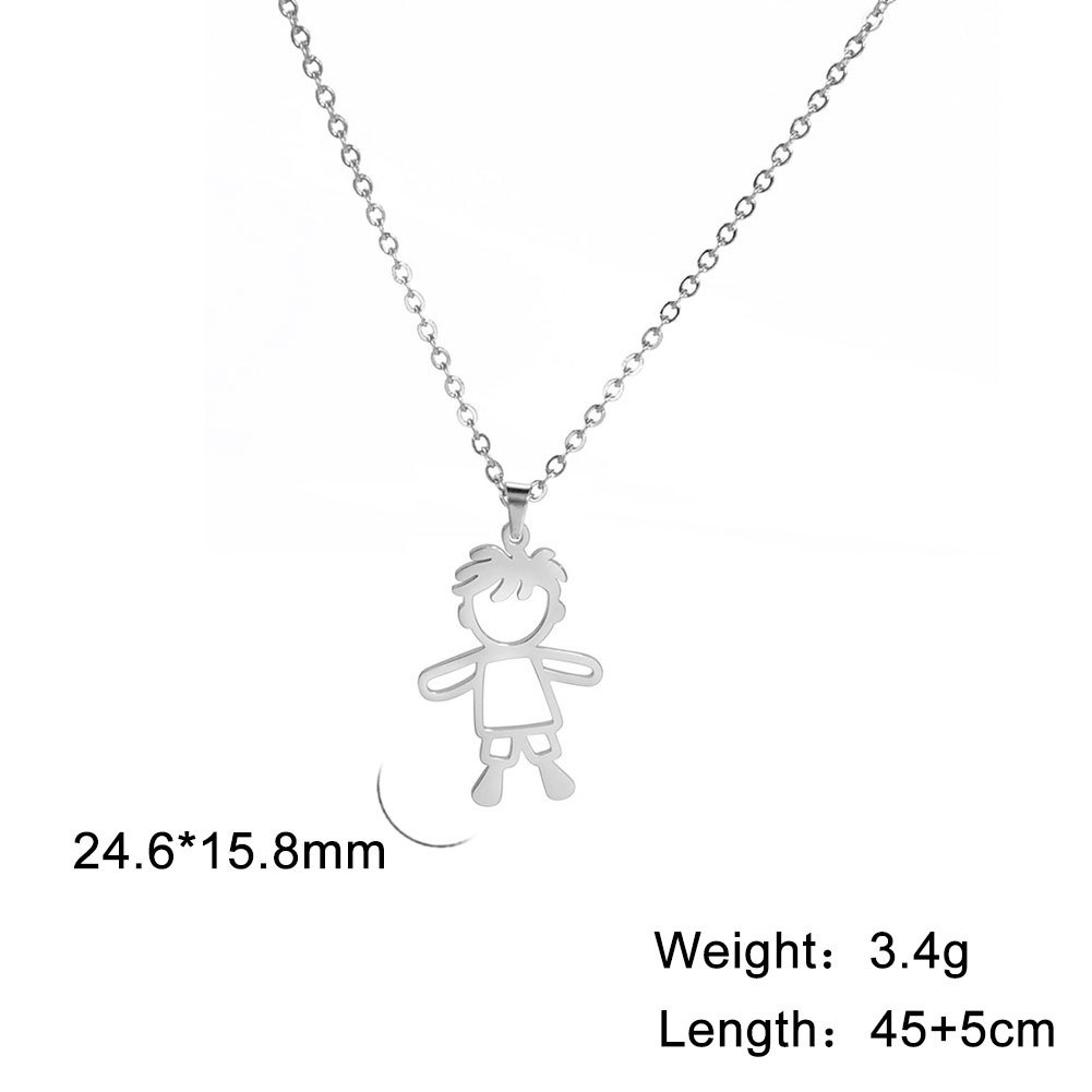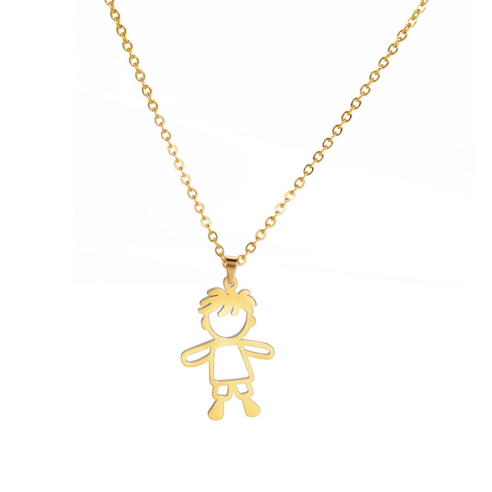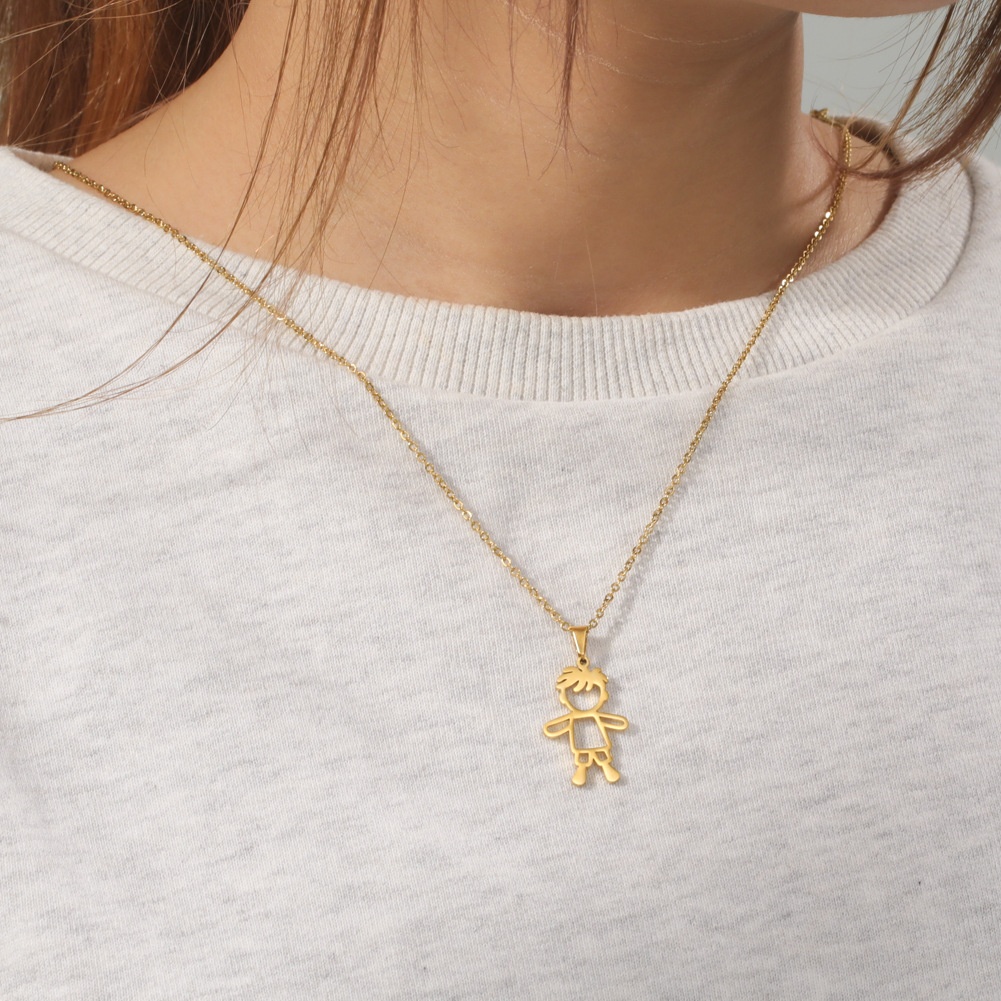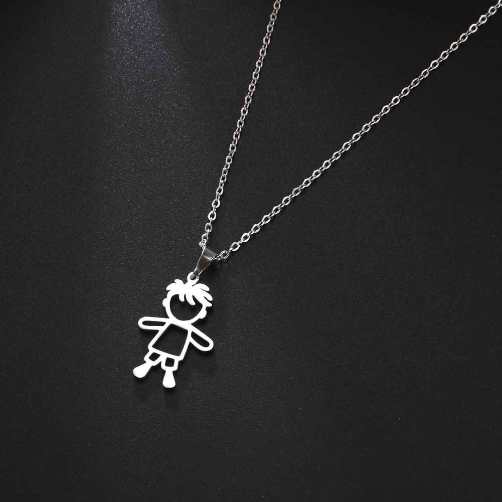 Titanium Steel Cutting Cartoon Cute Simple Hollow Boy Pendant304 Stainless Steel Necklace