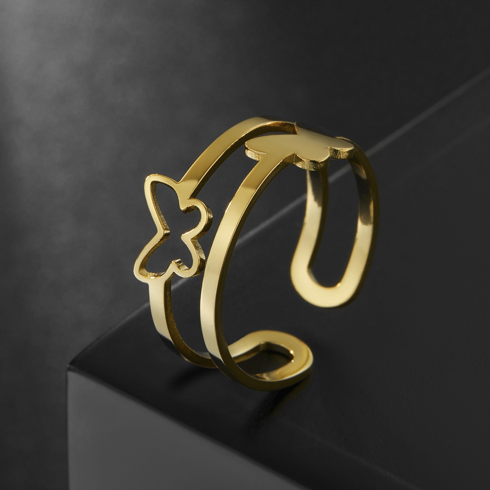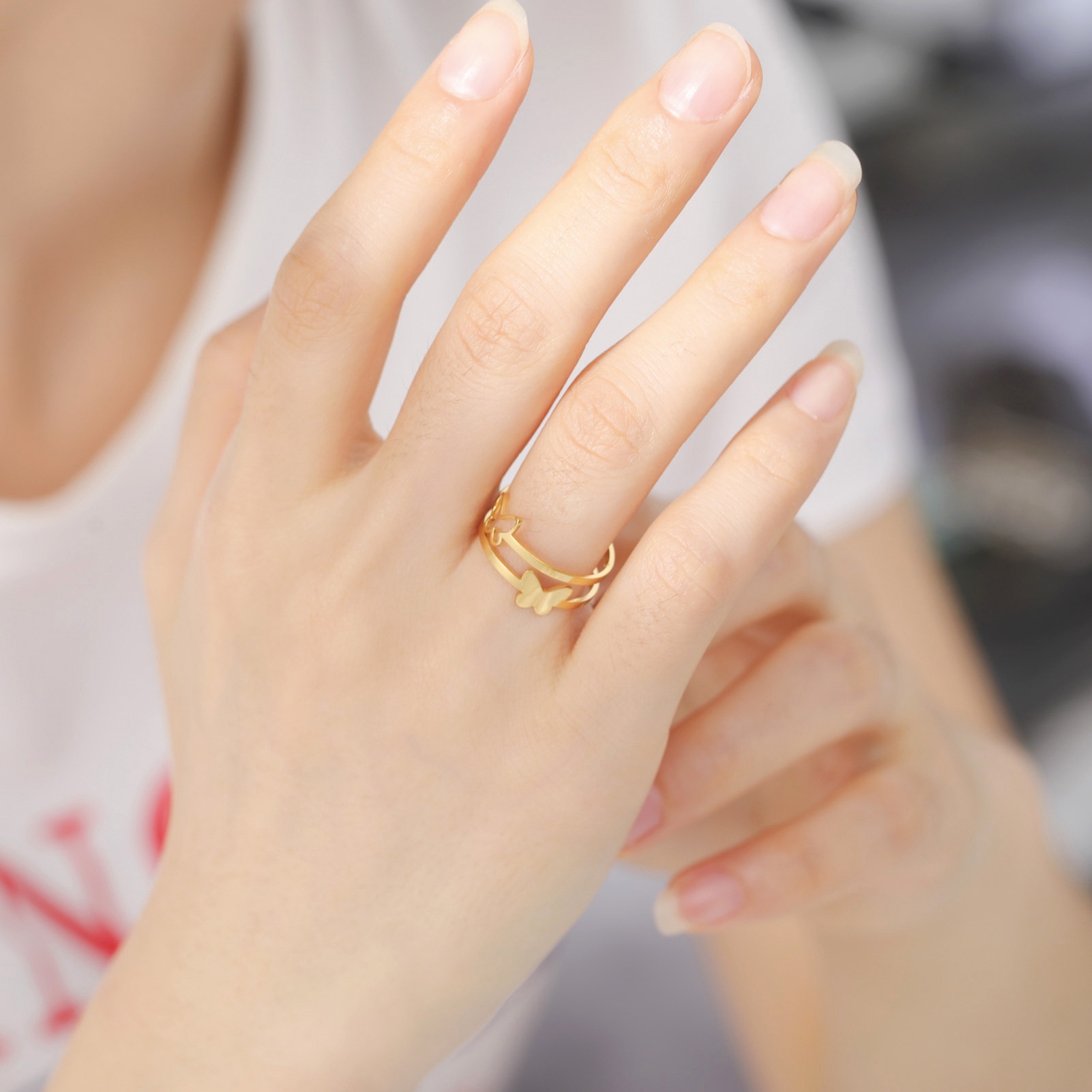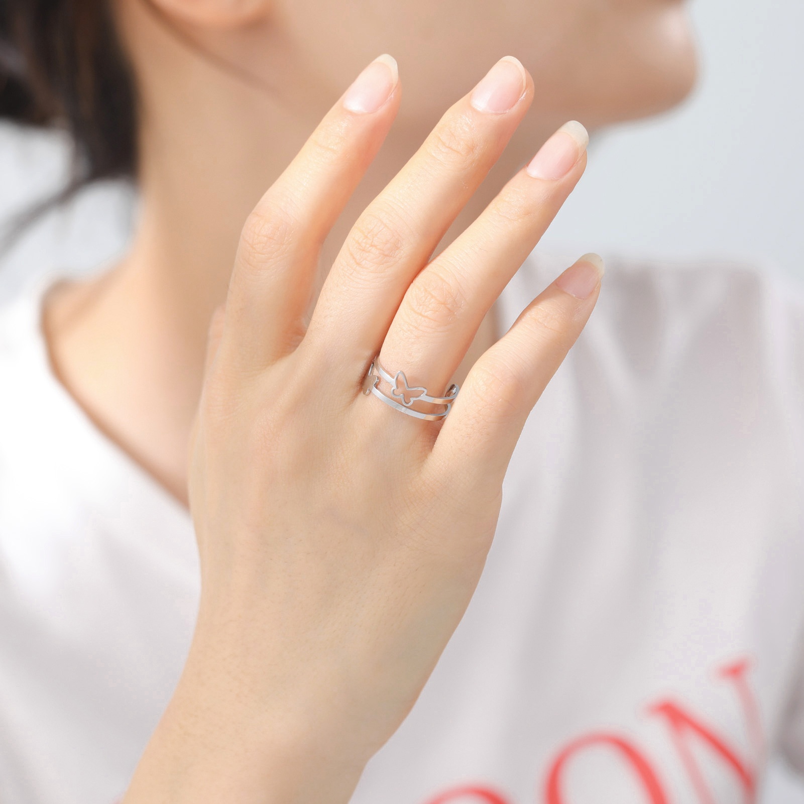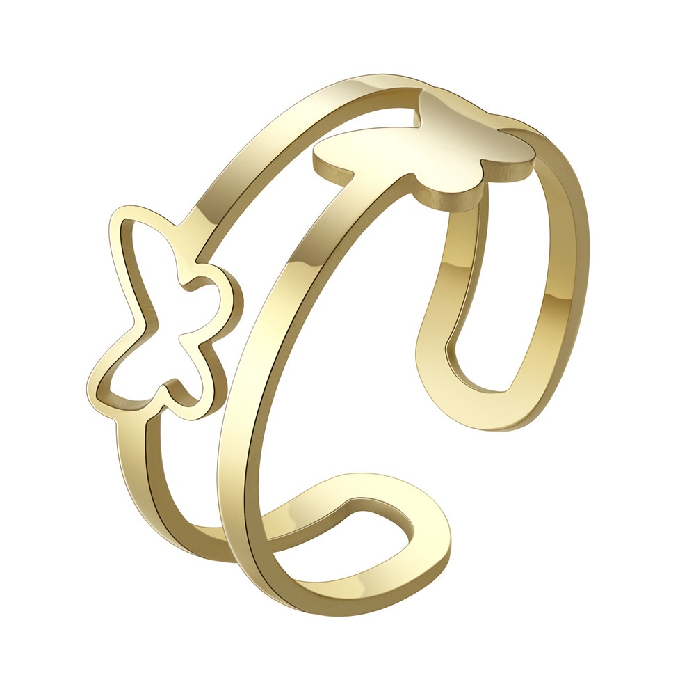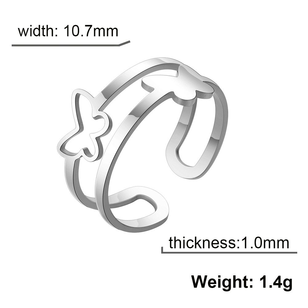Niche Design Light Luxury Jewelry Women's Double Layer Butterfly Adjustable Ring Fashionable And Simple Stainless Steel Couple Ring