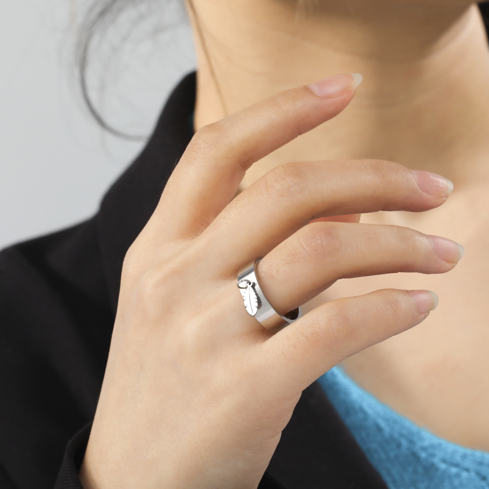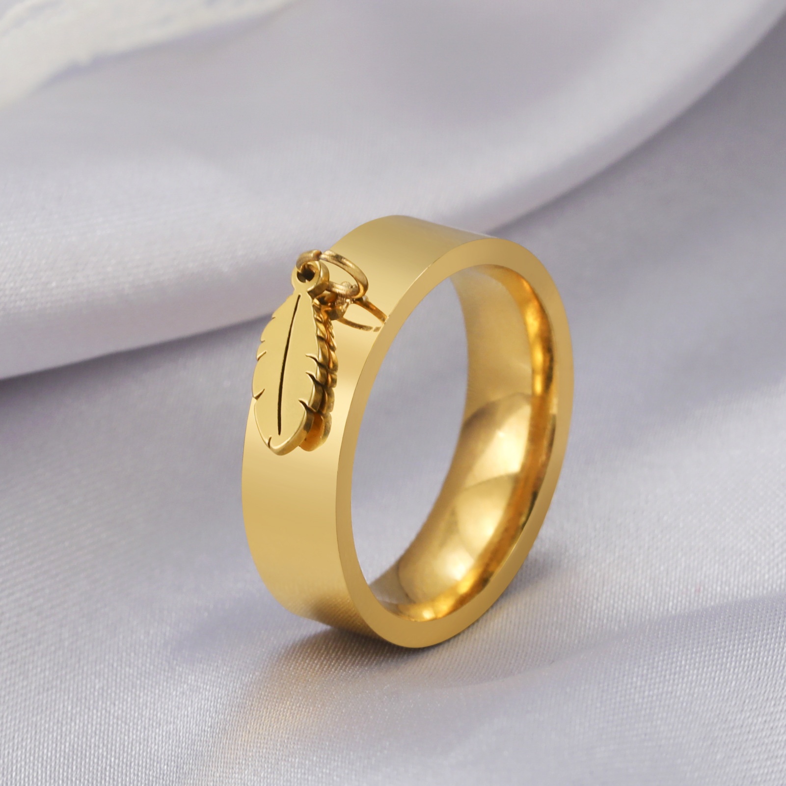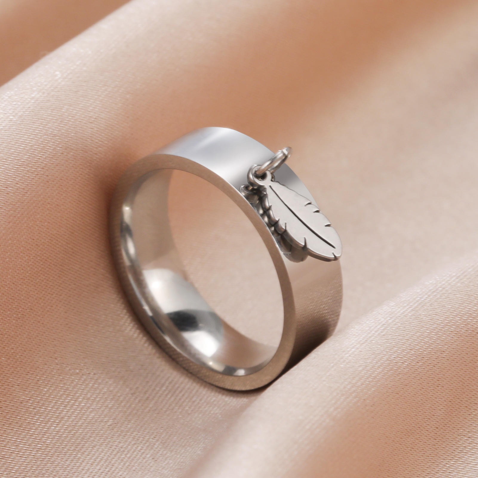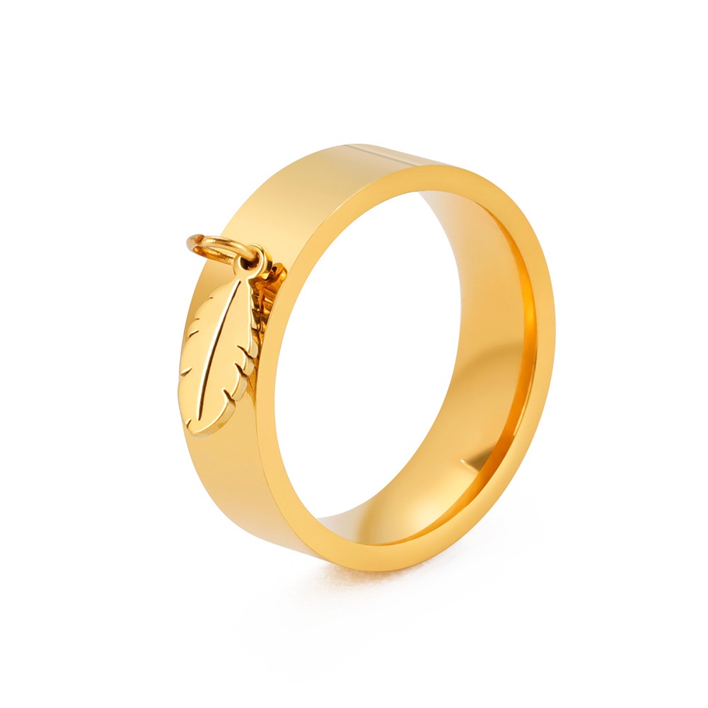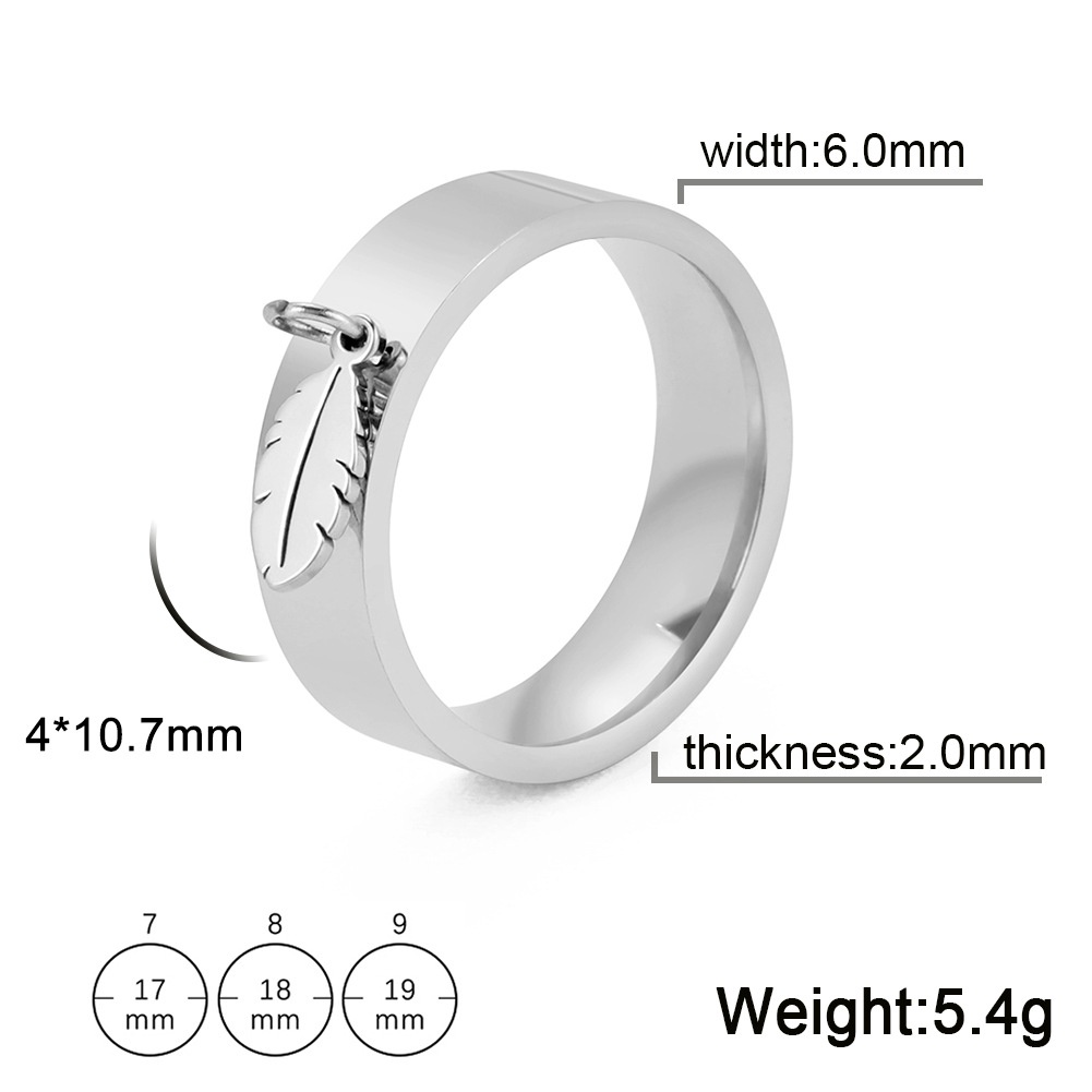 Direct European And American External Smooth Feather Pendant Ring Personality Simple Stainless Steel Men's And Women's Ring