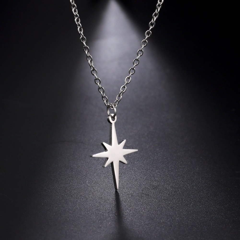 European And American Style Korean Titanium Steel Jewelry Cutting Six-pointed Starlight Pendant Stainless Steel Steel Necklace