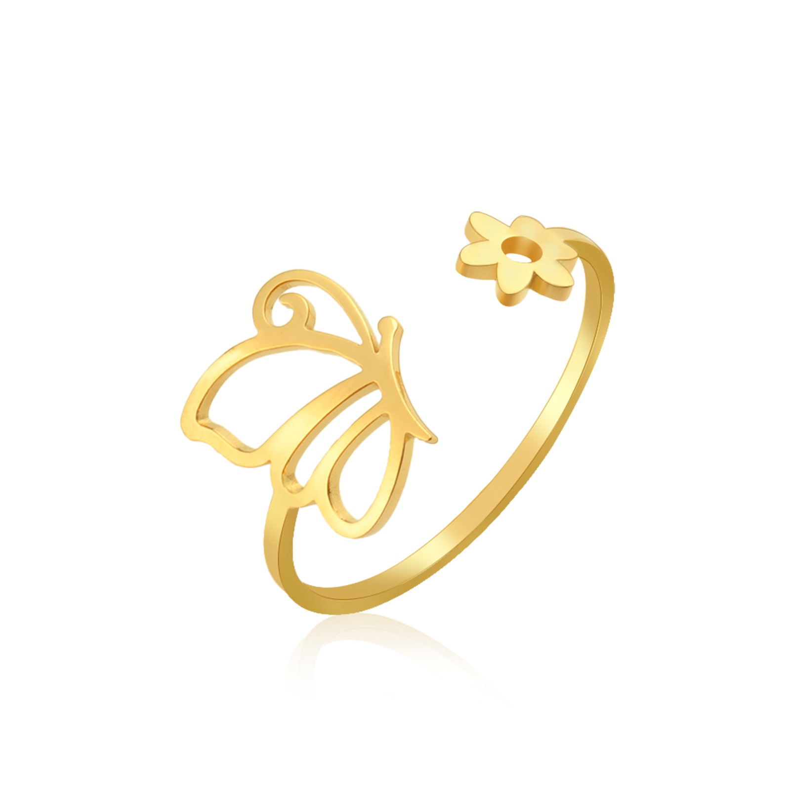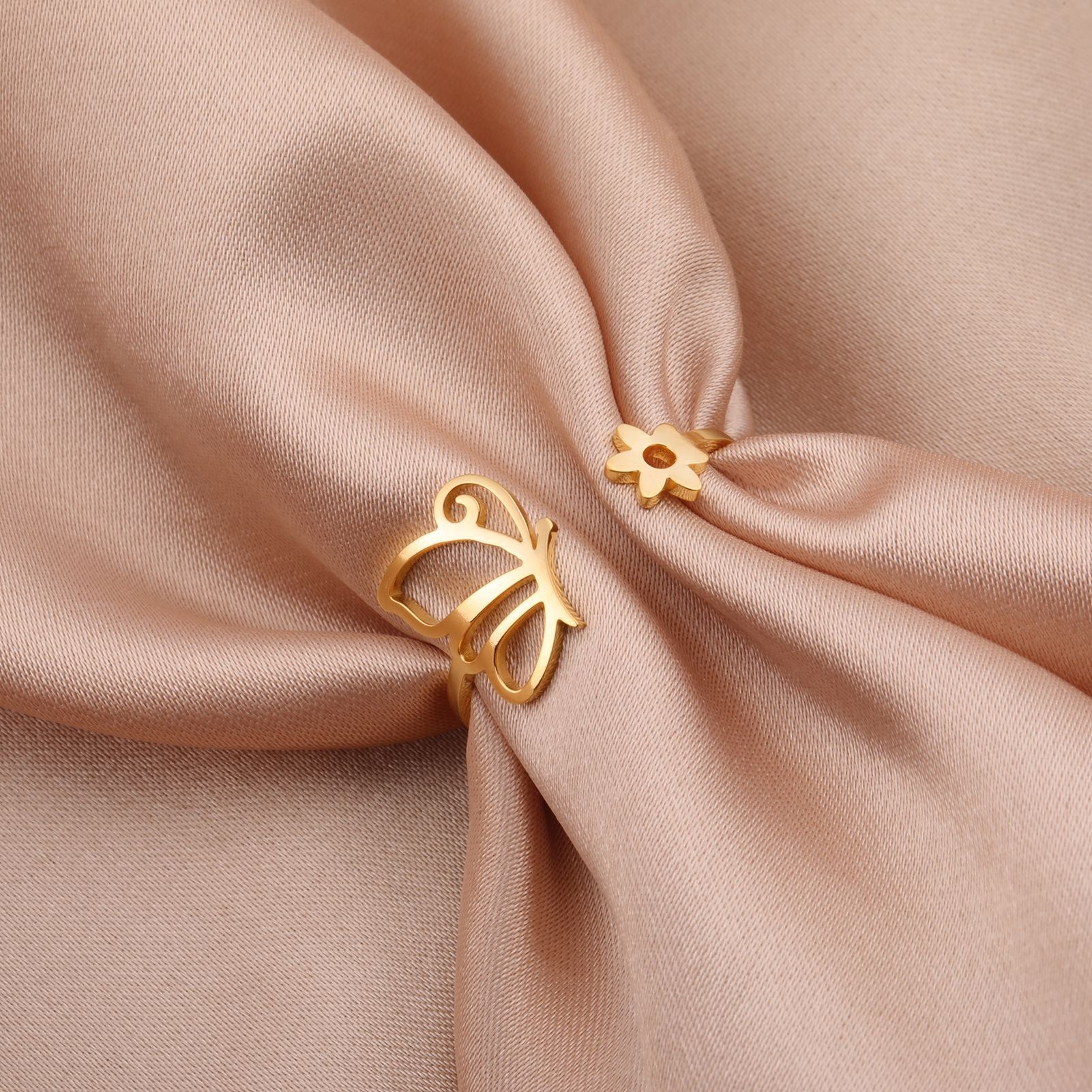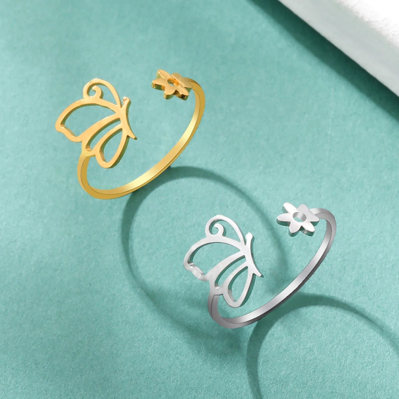 Flower Butterfly Women's Open Ring Stainless Steel Gold Adjustable Ring Fashionect Jewelry Birthday Gift