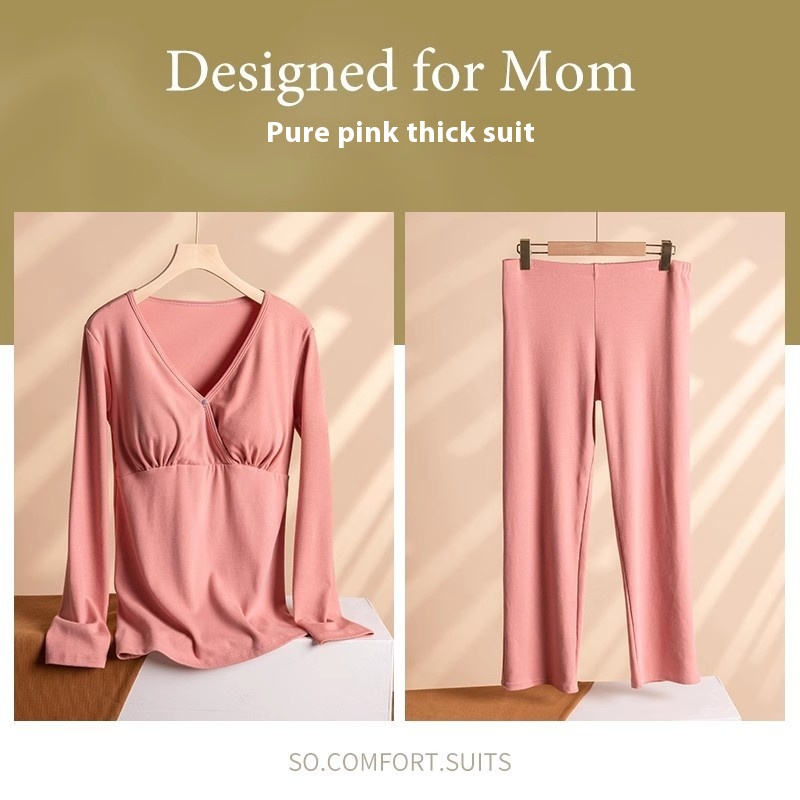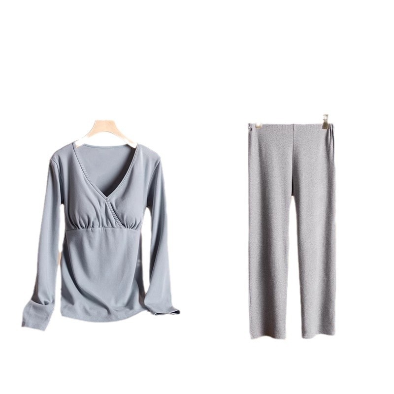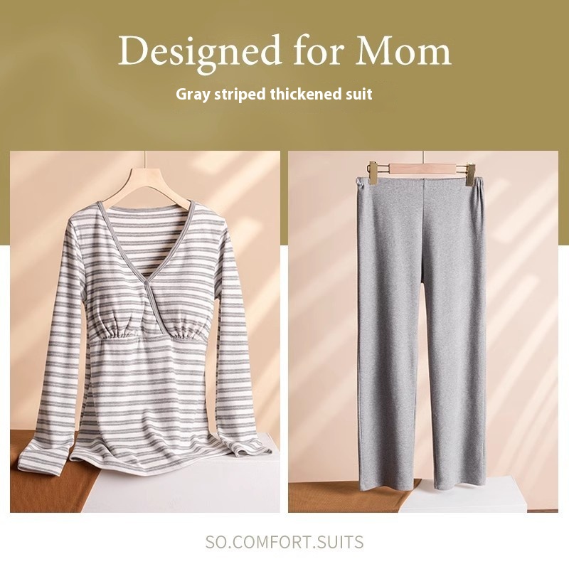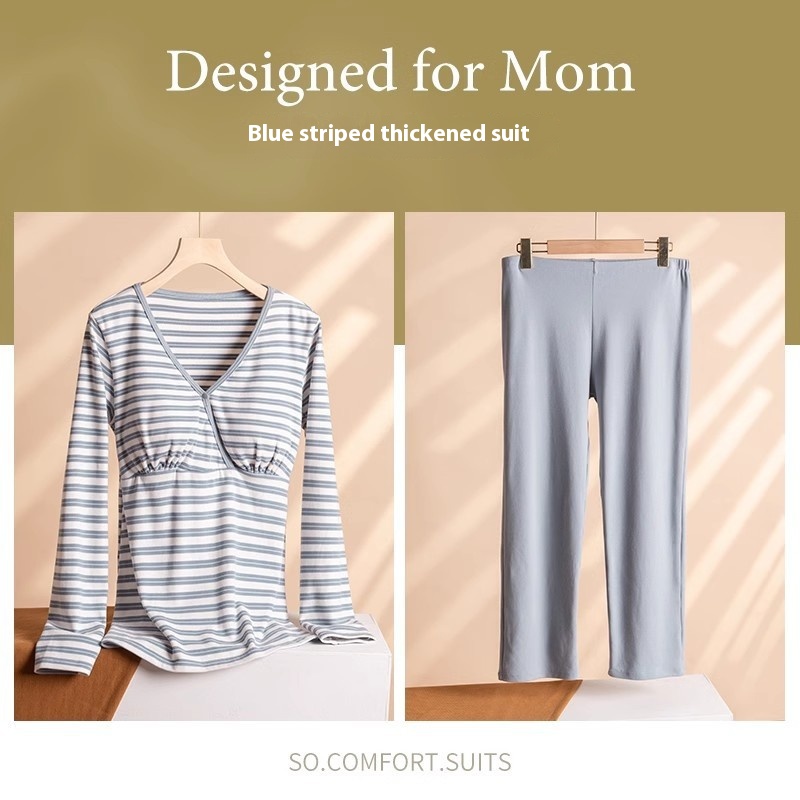 Thickened Pure Cotton Plus Size Postpartum Clothes Maternity Wear Crossover Long-sleeved Home Clothes Pajamas Pajama Pants Suit