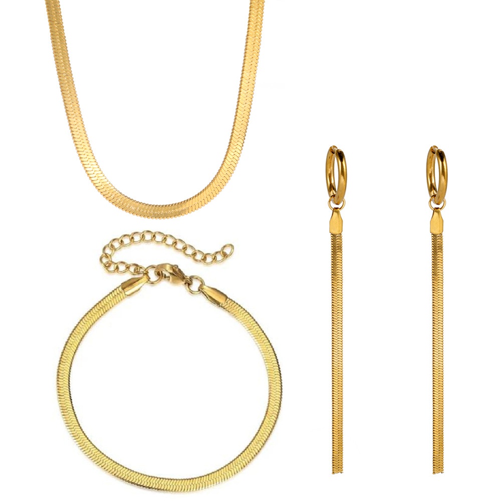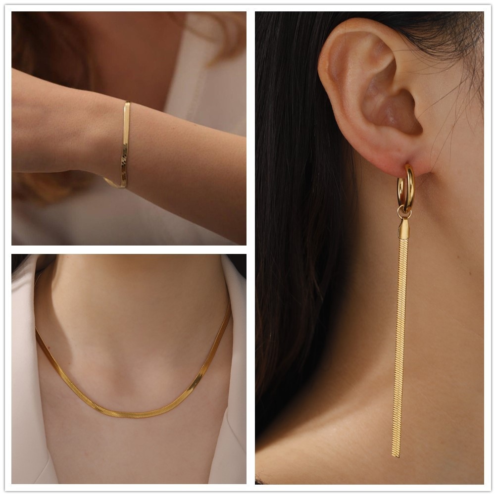 Snake Chain Necklace Bracelet Earrings Jewelry Set Stainless Steel Curb Chain Necklace Fashion Tassel Stainless Steel Jewelry Set