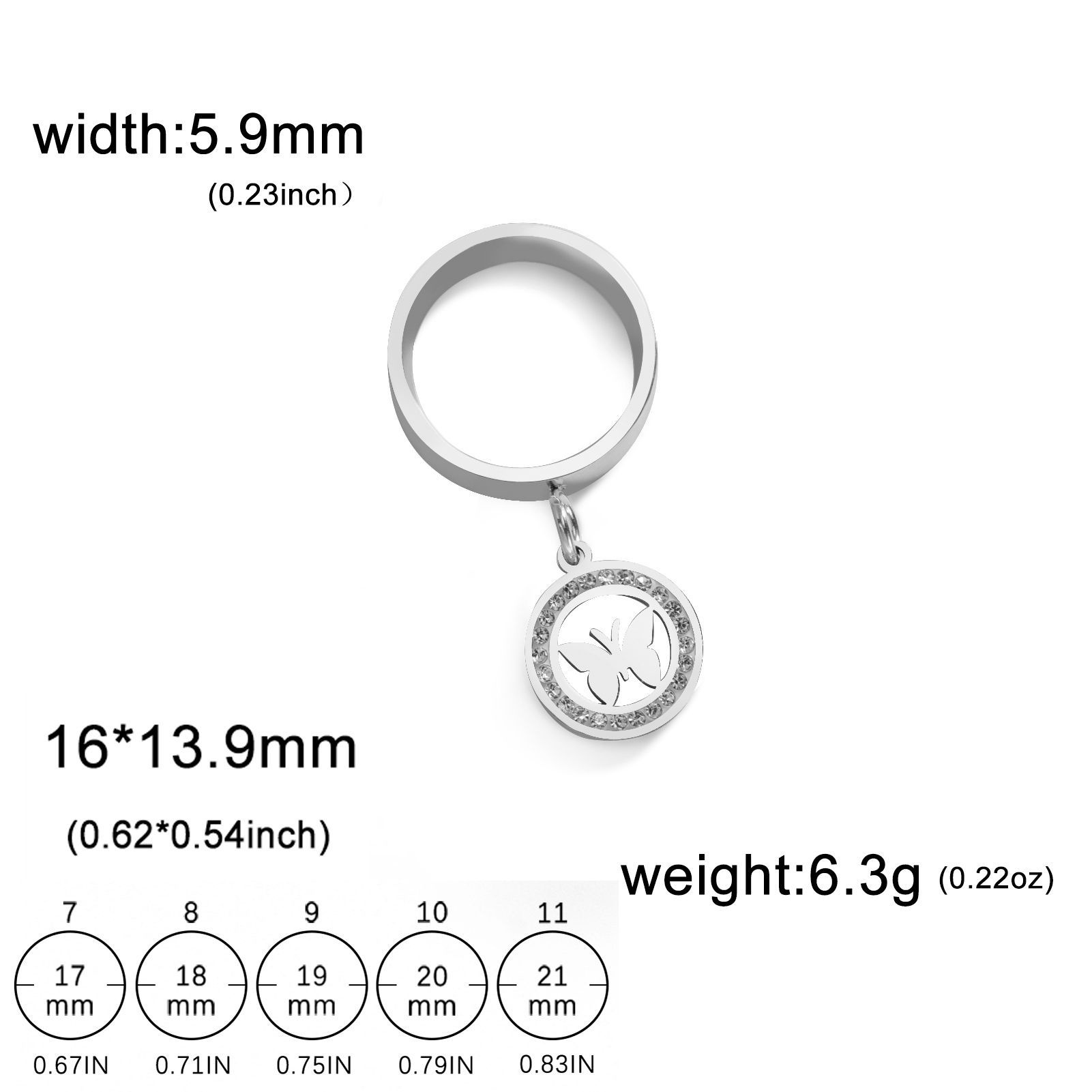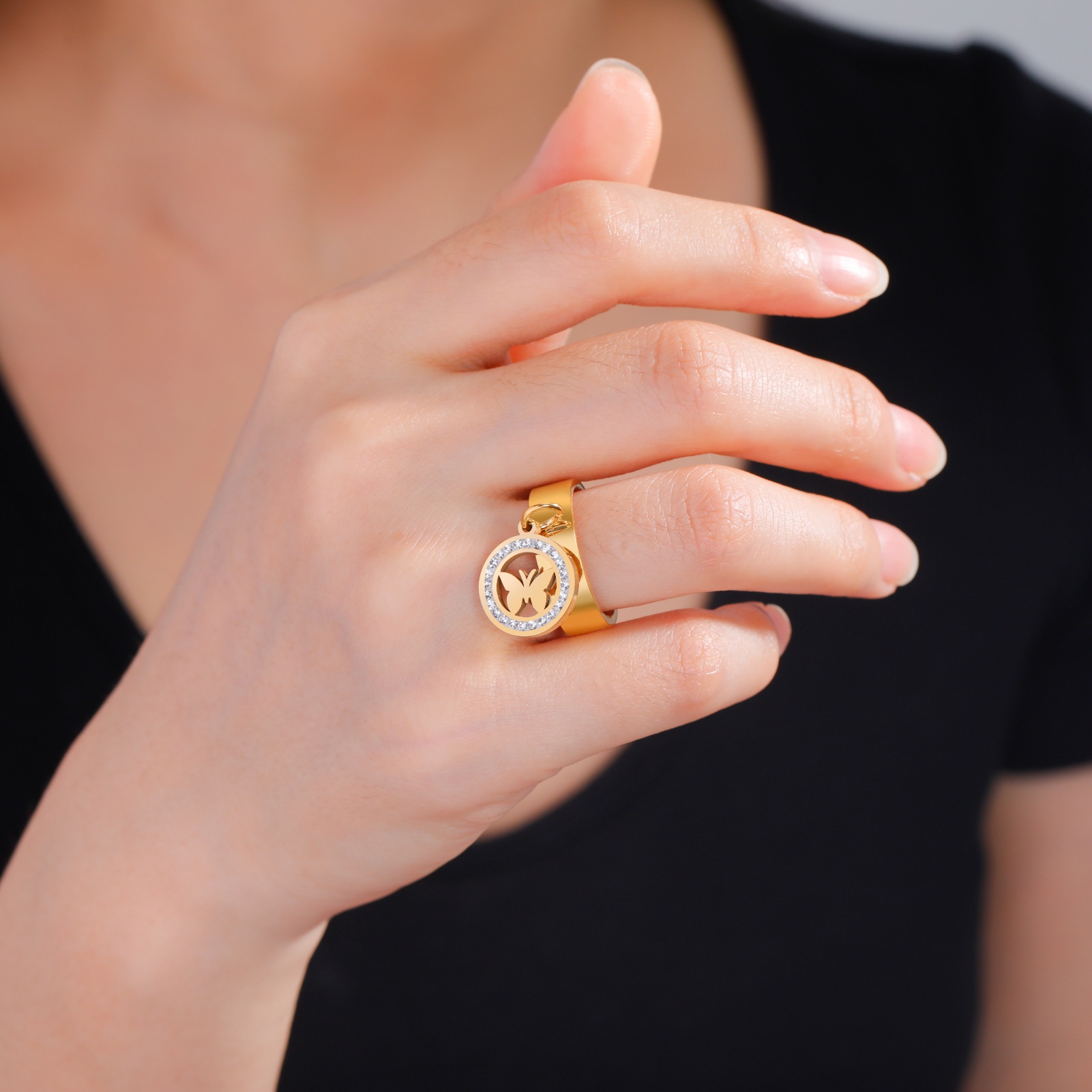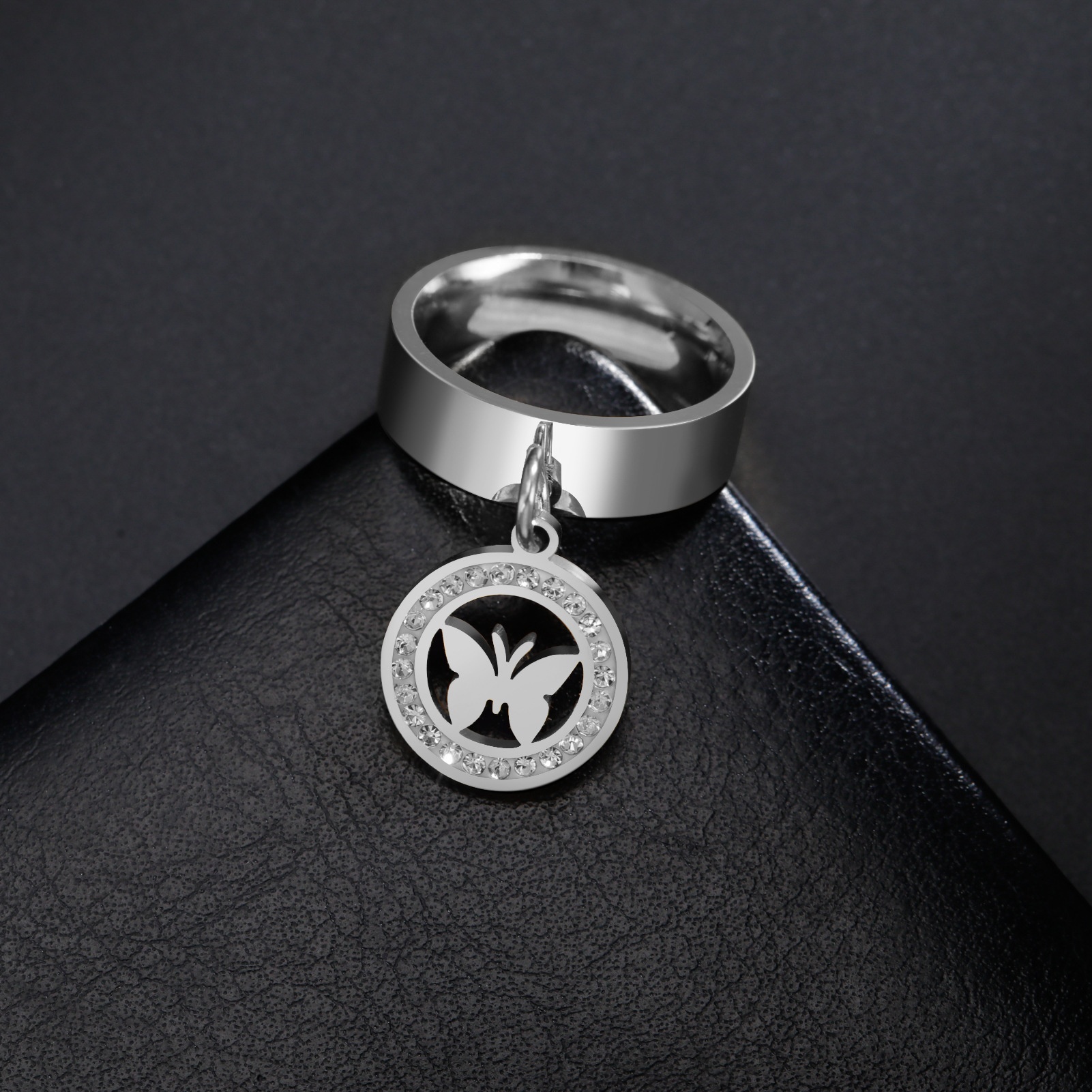 Cut Stainless Steel Gold Welding Ring With Diamond Outer Ring Butterfly Pendant Fashion All-match Stainless Steel Ring