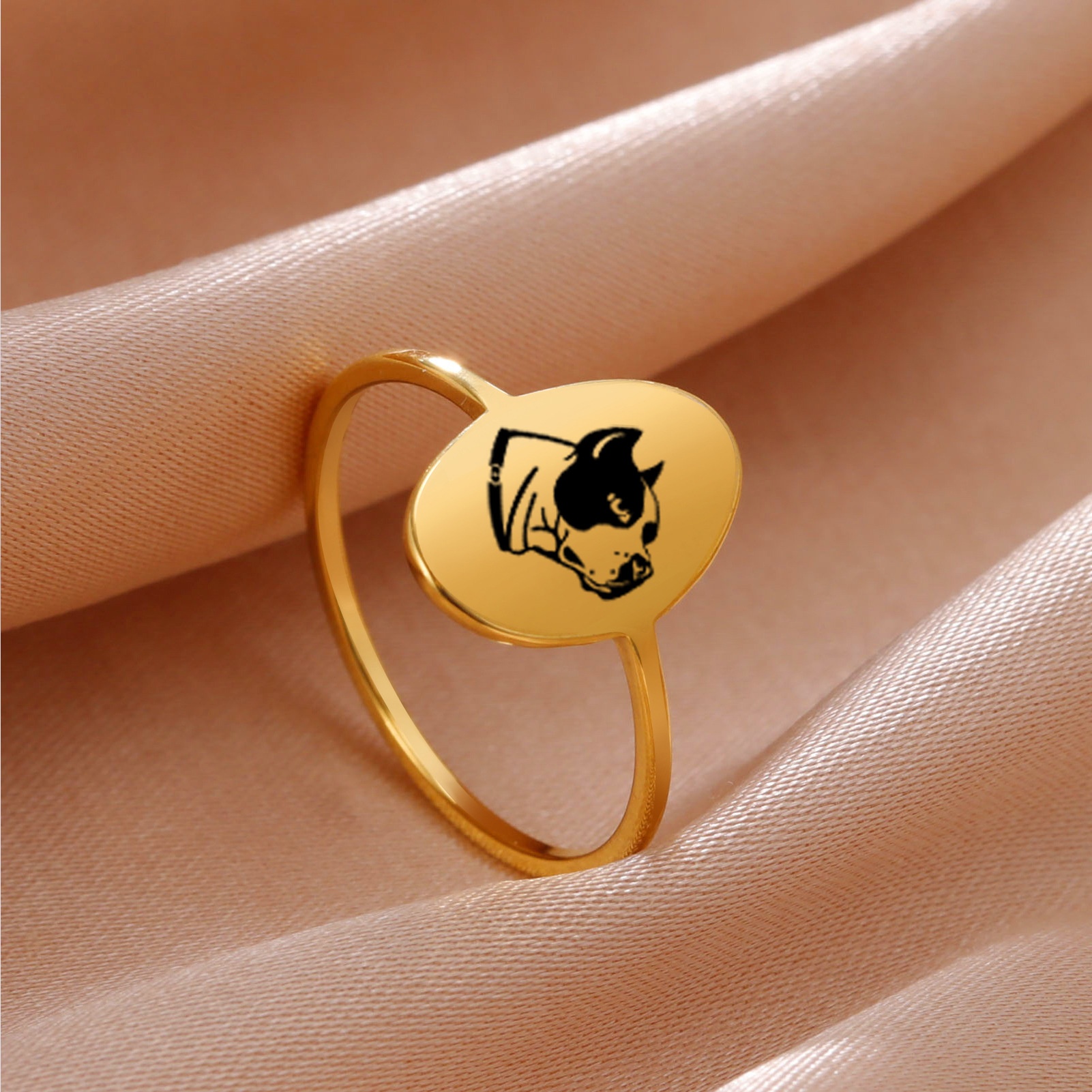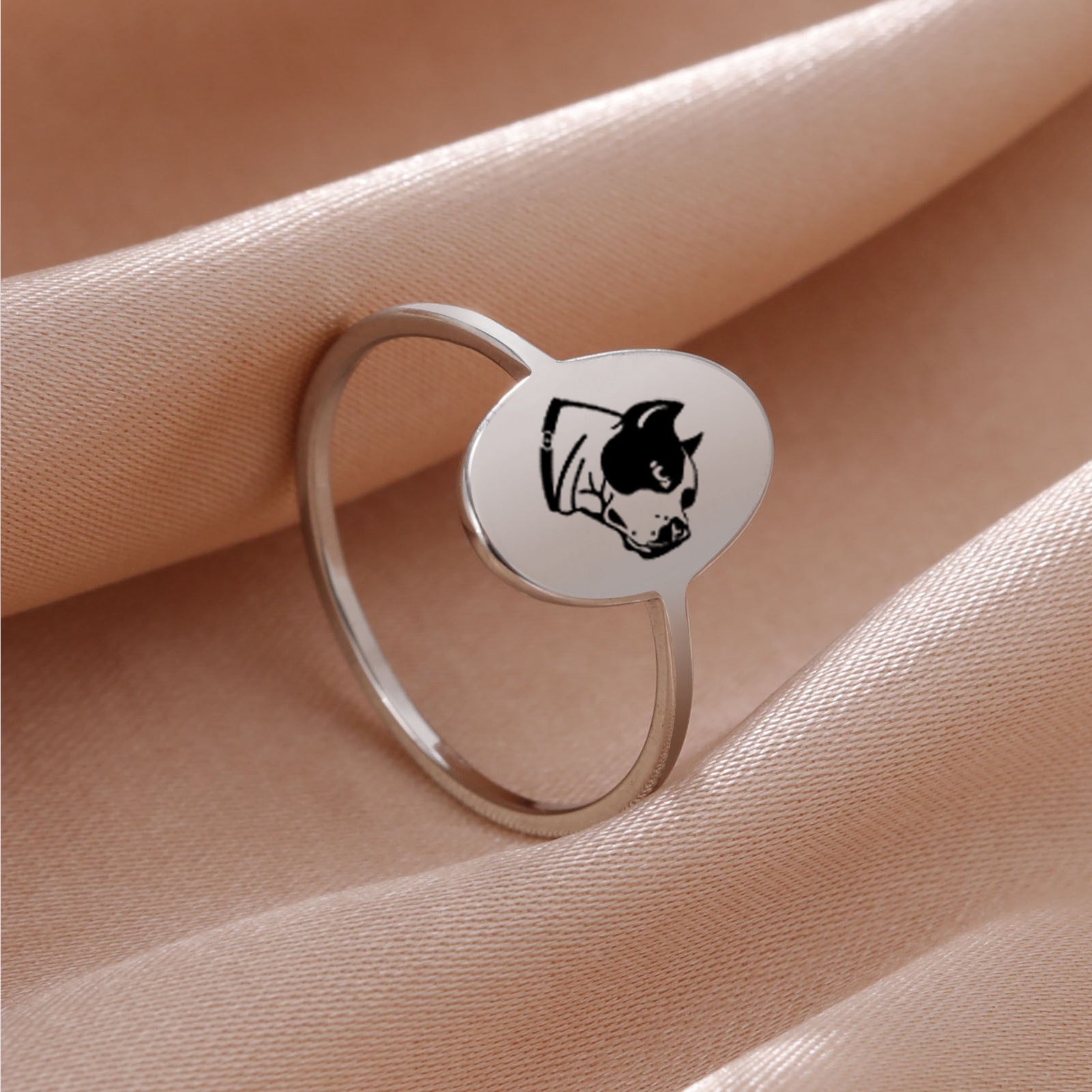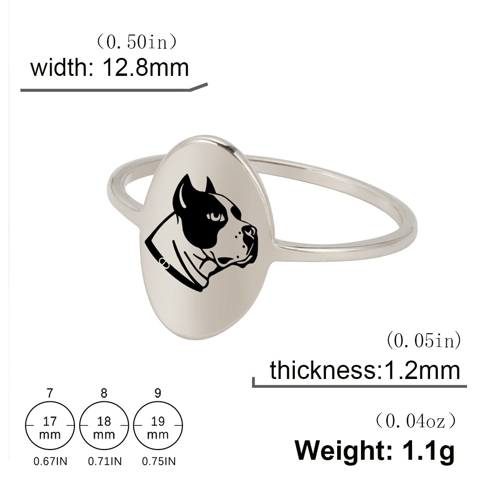 European And American Personalized Cartoon Animal Laser Marking Dog Bulldog Ring Men's And Women's Stainless Steel Ring