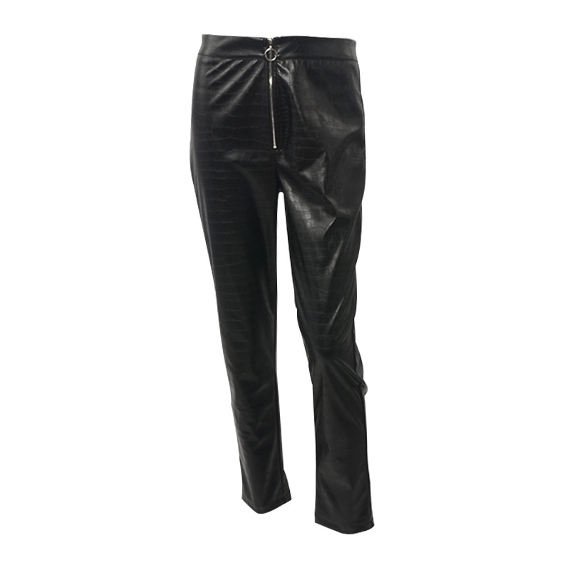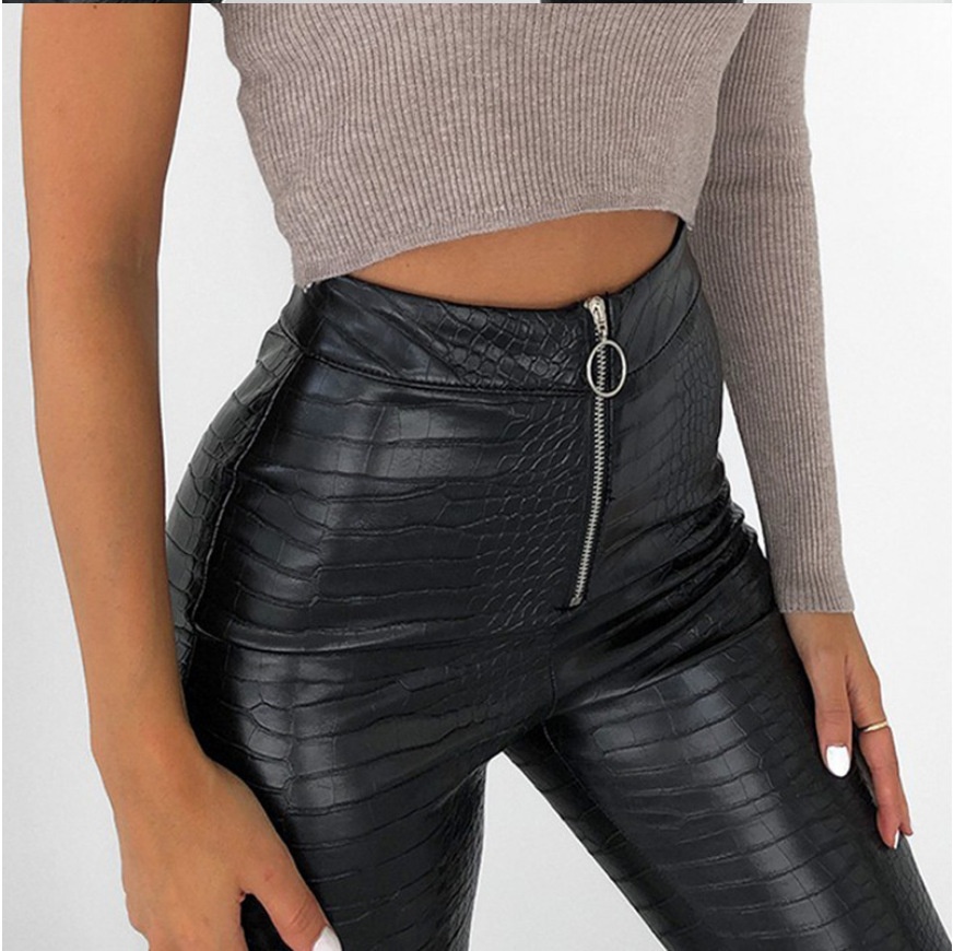 Spring And Summer Women's Fashion Net Red Crocodile Pattern PUZipper Tights High Waist High Street Slim Casual Leather Pants Women