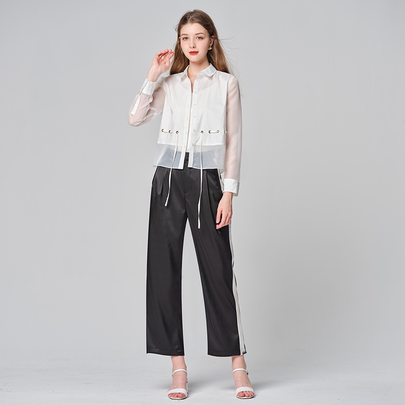 Spring Women's Black And White Wide Leg Pants High Waist Suit Pants Loose Acetate Commuter Casual Women's Pants